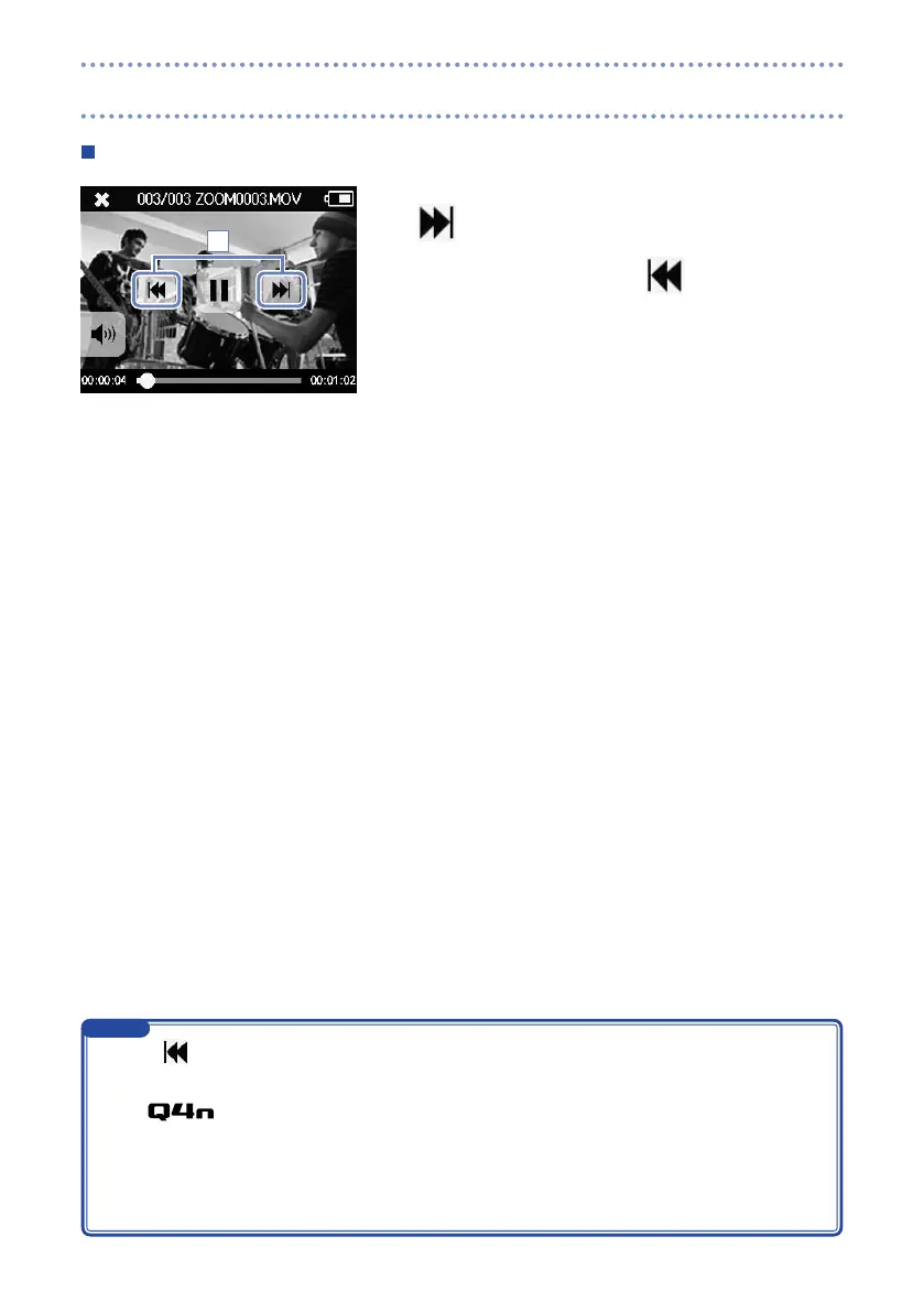 during playback to return to the beginning of the currently selected file.