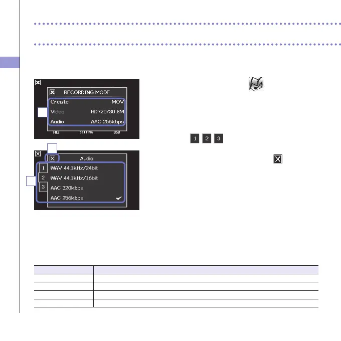 Create:Typeoflescreated.(see"Recordingmodeoverview"onpage15.)
