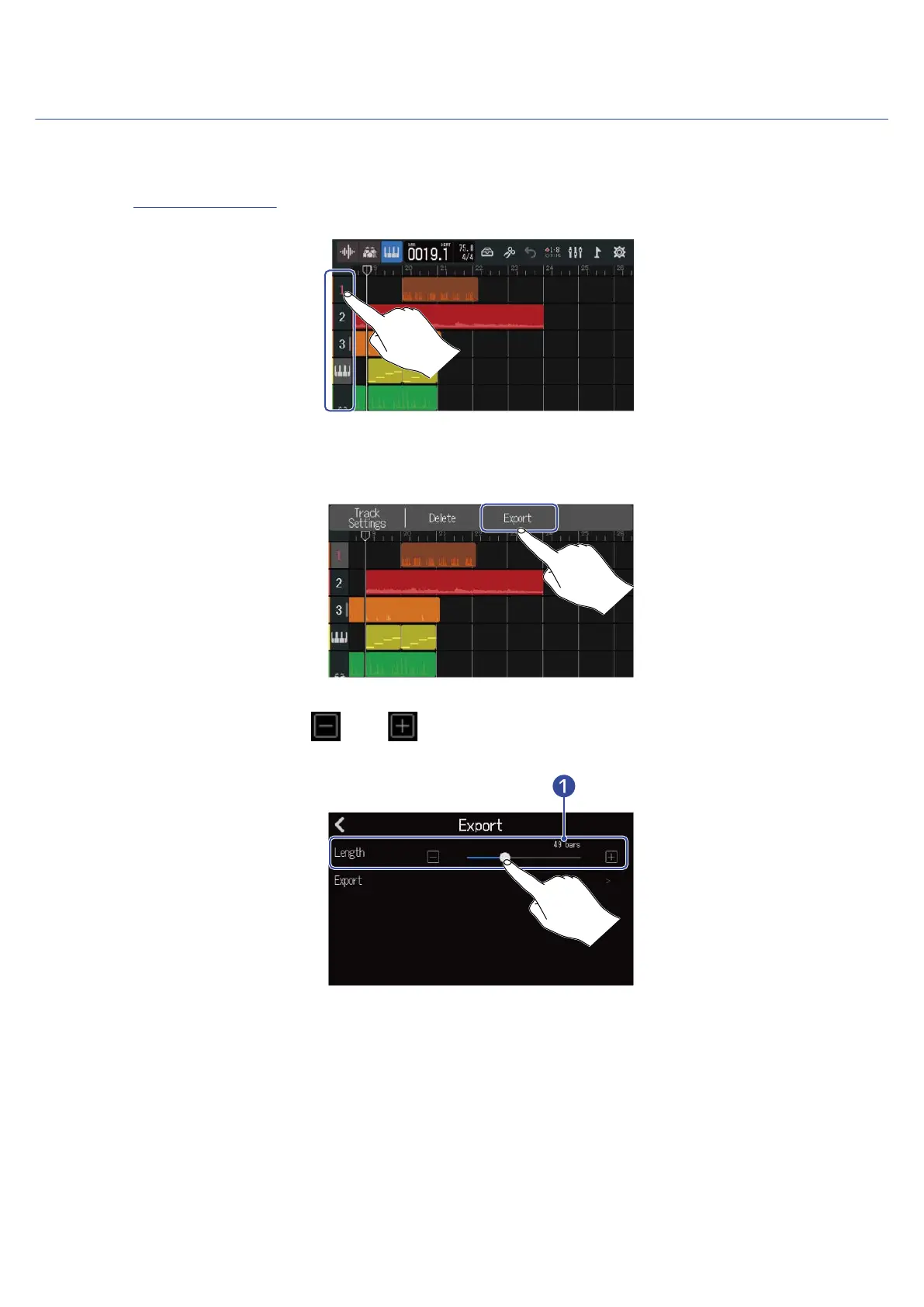 1. On the Track View Screen, double-tap the header of the track that you want to export as a WAV or SMF
