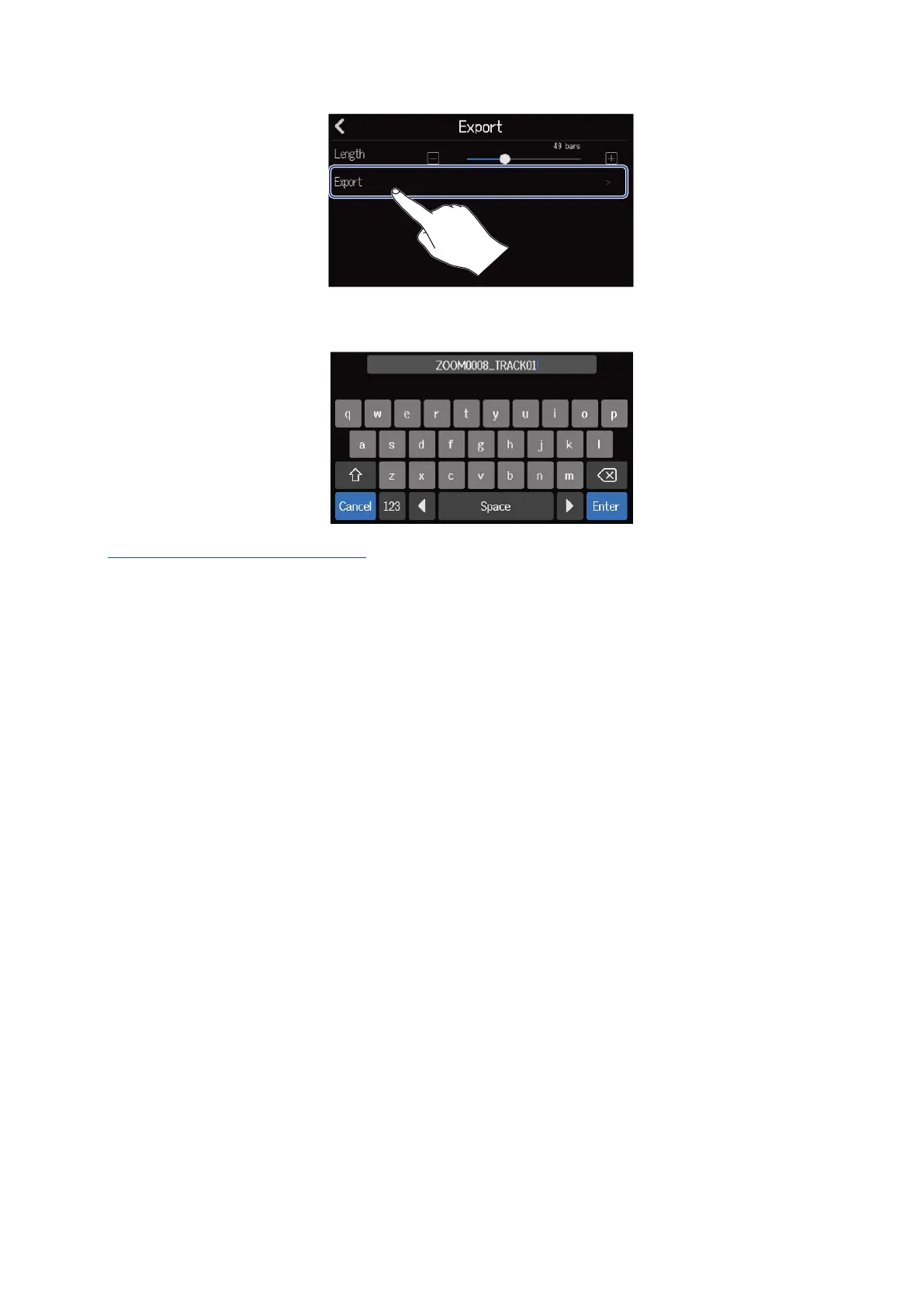 This exports the track as a WAV or SMF file and reopens the track view screen.