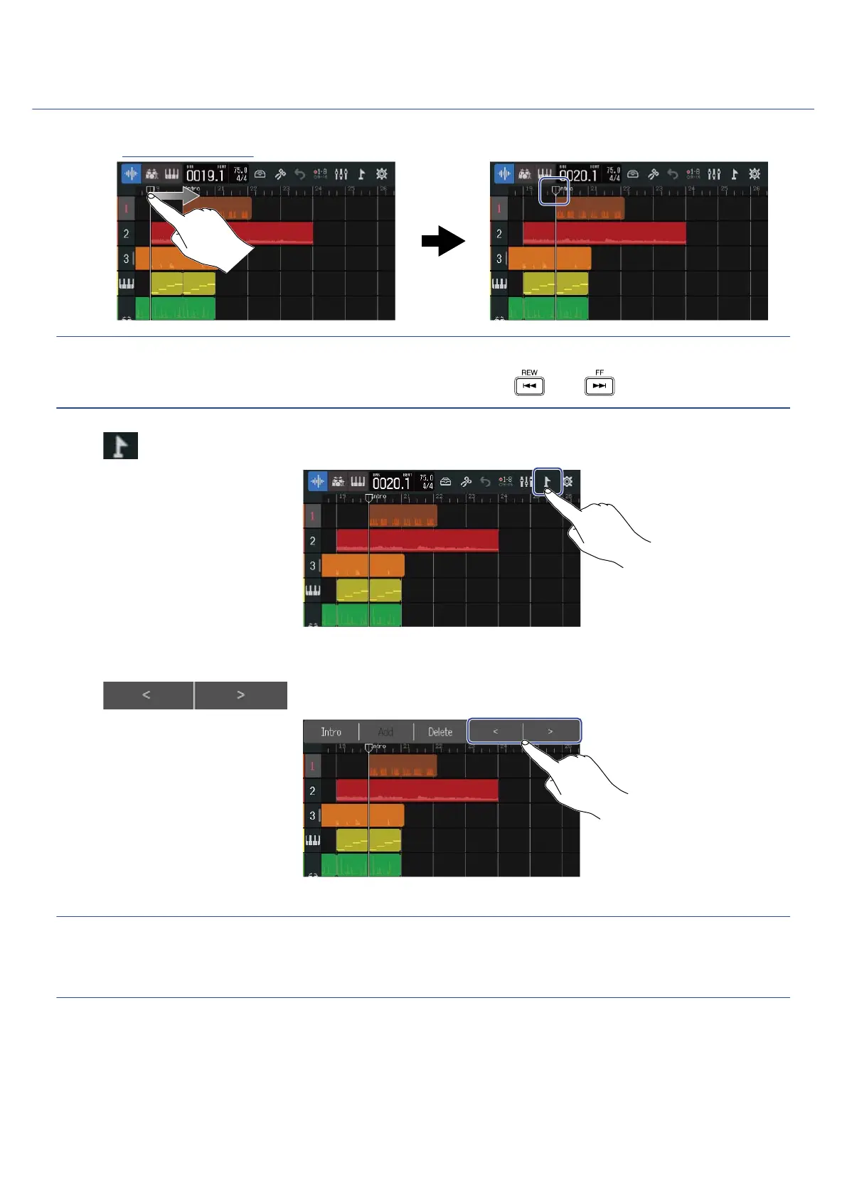 Movement is possible in bar increments. If another marker already exists, movement will stop at the bar