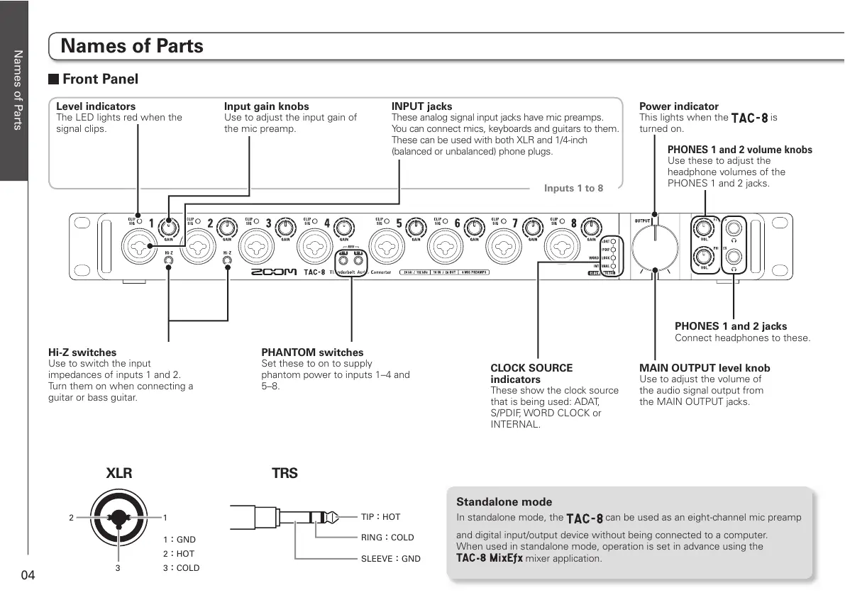 In standalone mode, the can be used as an eight-channel mic preamp