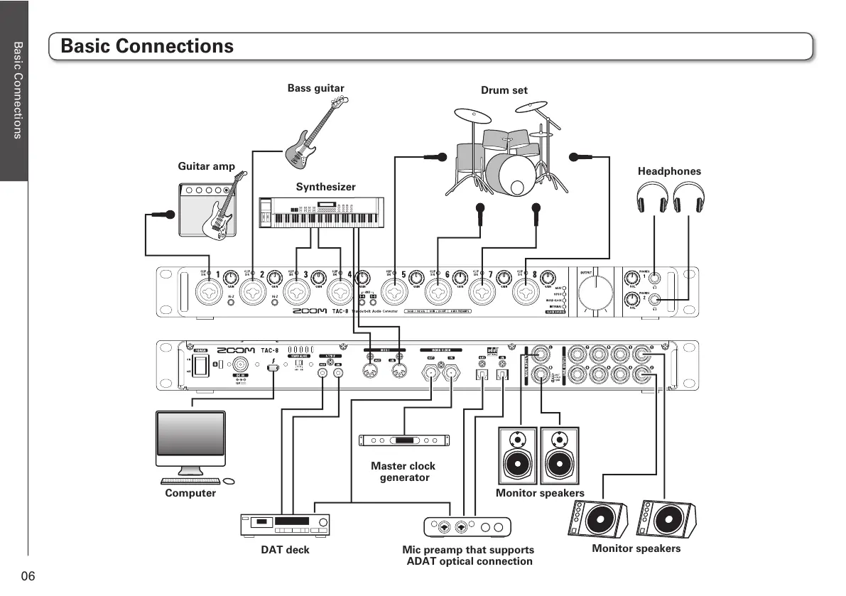 Zoom tac-8 - Basic Connection Guide; Instrument and Audio Setup