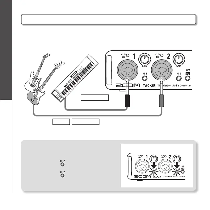 Connect instruments to INPUTS 1/2 using TRS/mono phone cables.