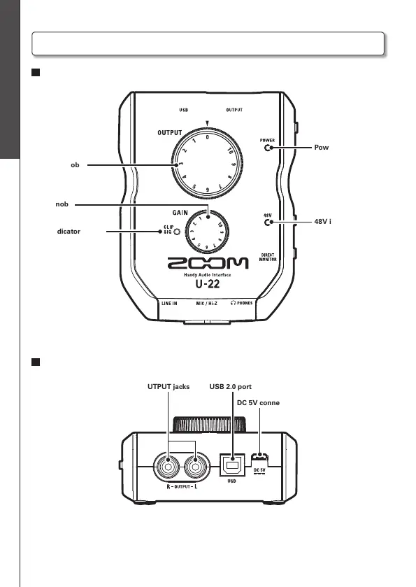 Zoom U-22 - Part Names; Top; Back