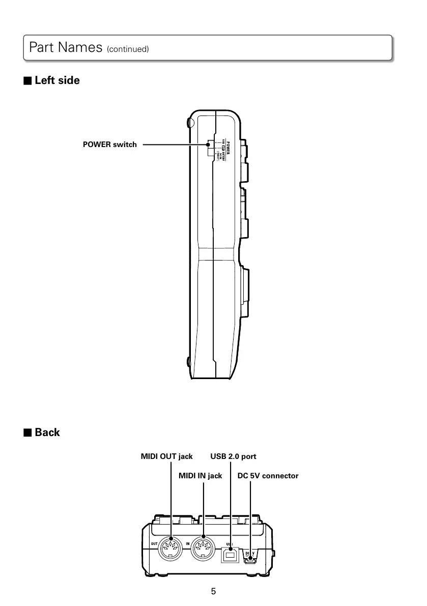 Zoom U-24 - Left Side Power Switch; Back Panel Connectors