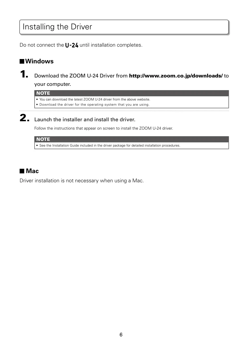 1. Download the ZOOM U-24 Driver from http://www.zoom.co.jp/downloads/ to