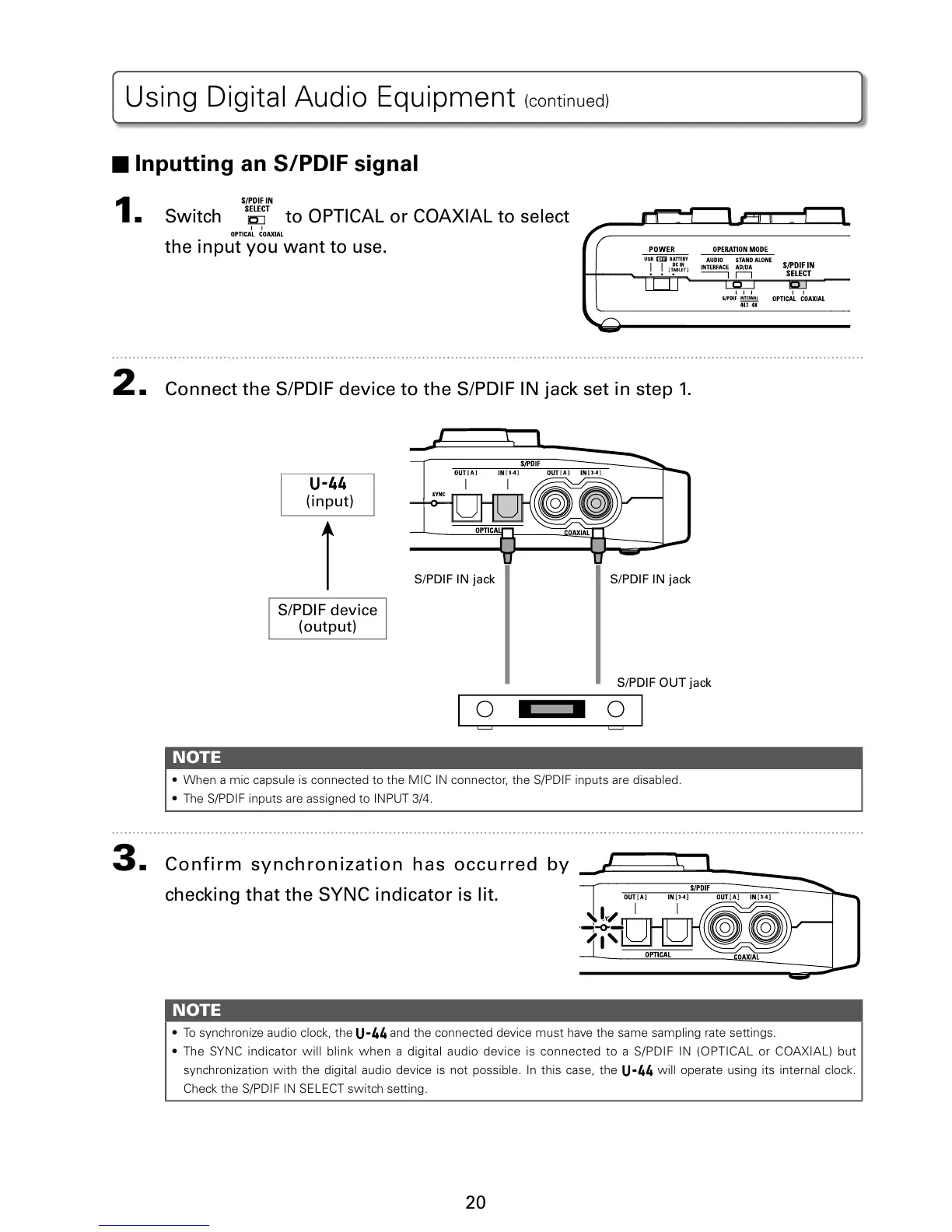 synchronization with the digital audio device is not possible. In this case, the will operate using its internal clock.