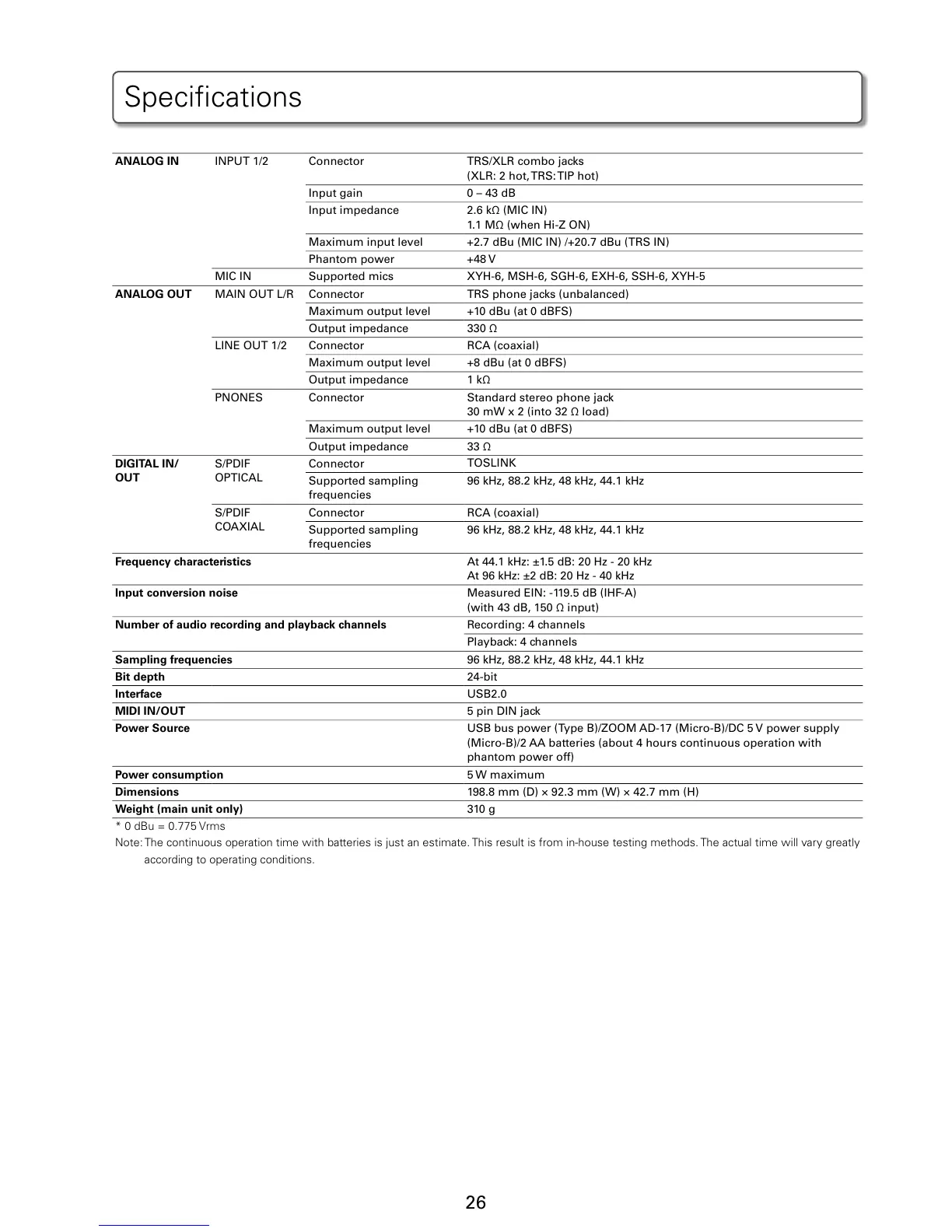 Power Source USB bus power (Type B)/ZOOM AD-17 (Micro-B)/DC 5 V power supply