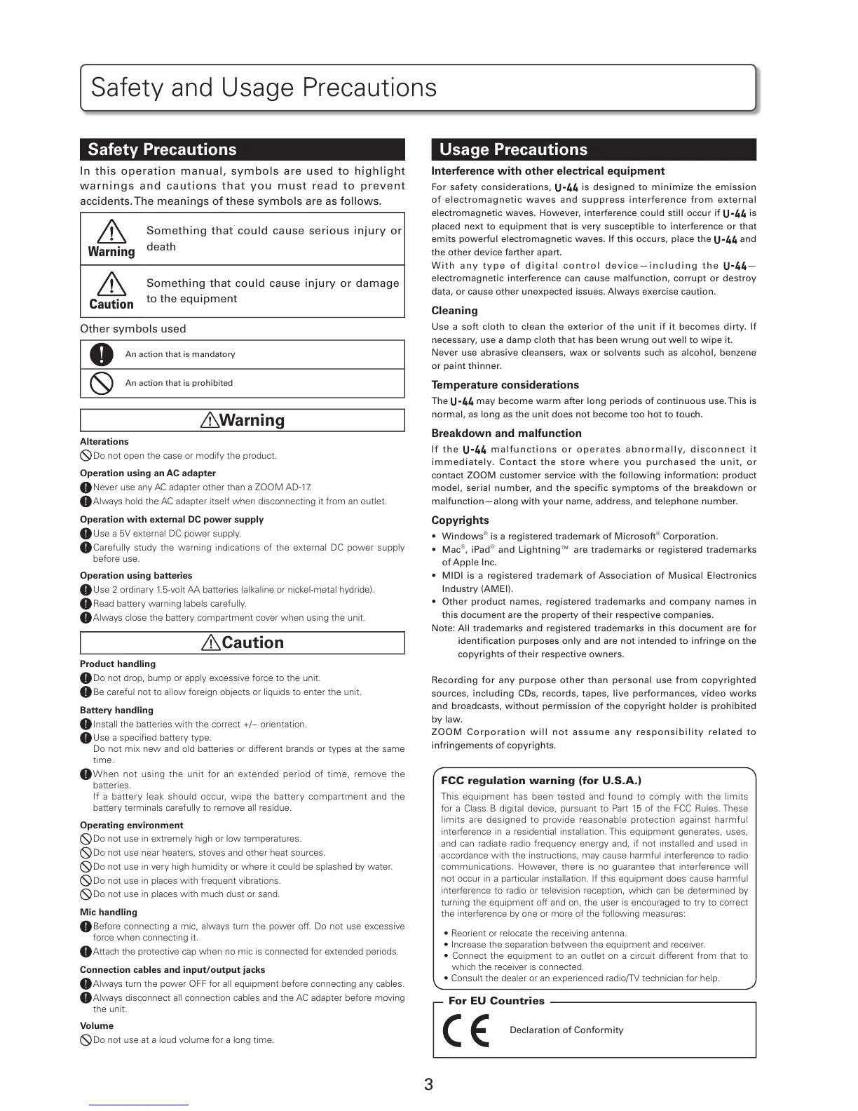 ZOOM Corporation will not assume any responsibility related to