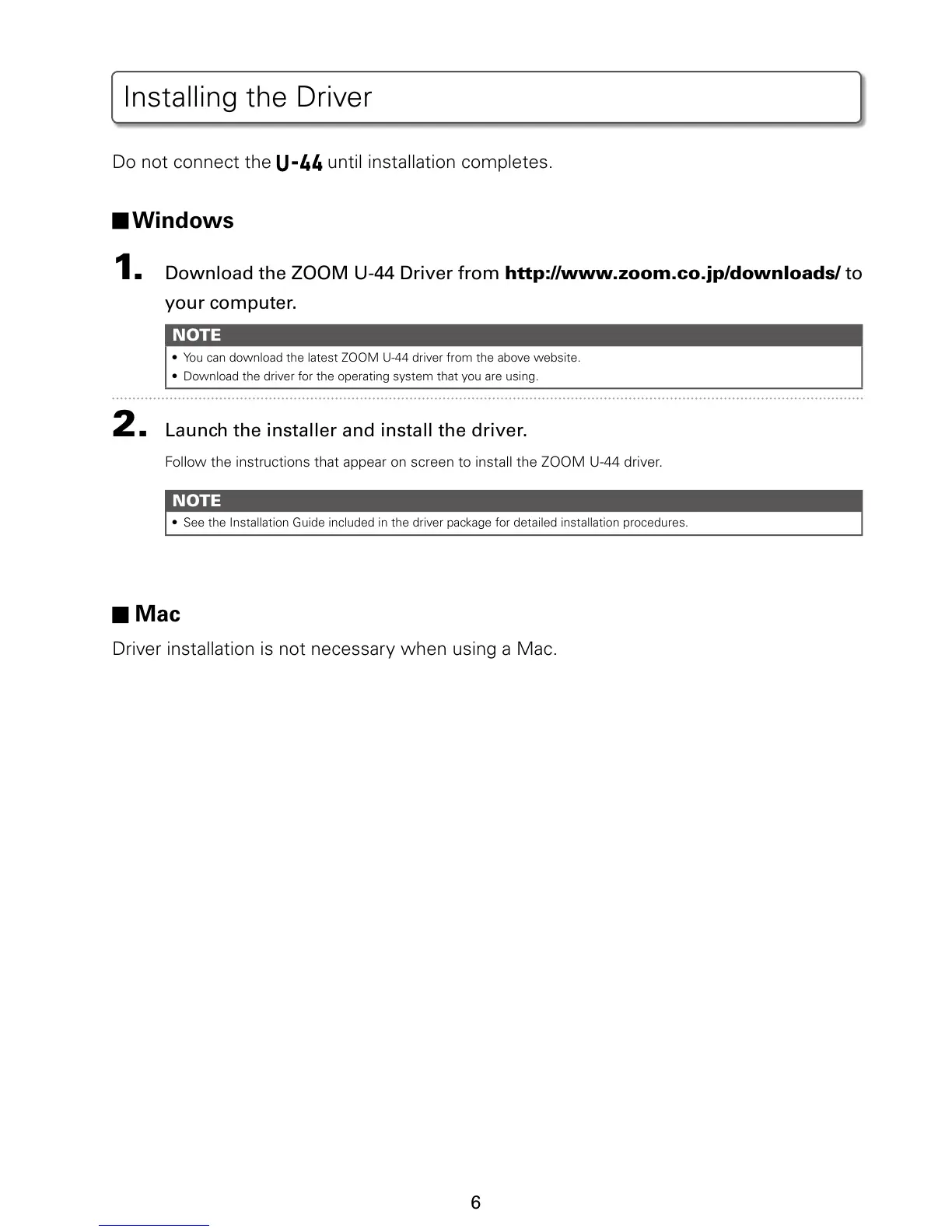 1. Download the ZOOM U-44 Driver from http://www.zoom.co.jp/downloads/ to