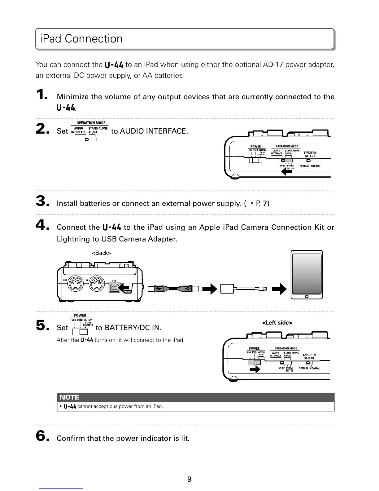 :PVDBODPOOFDUUIF to an iPad when using either the optional AD-17 power adapter,