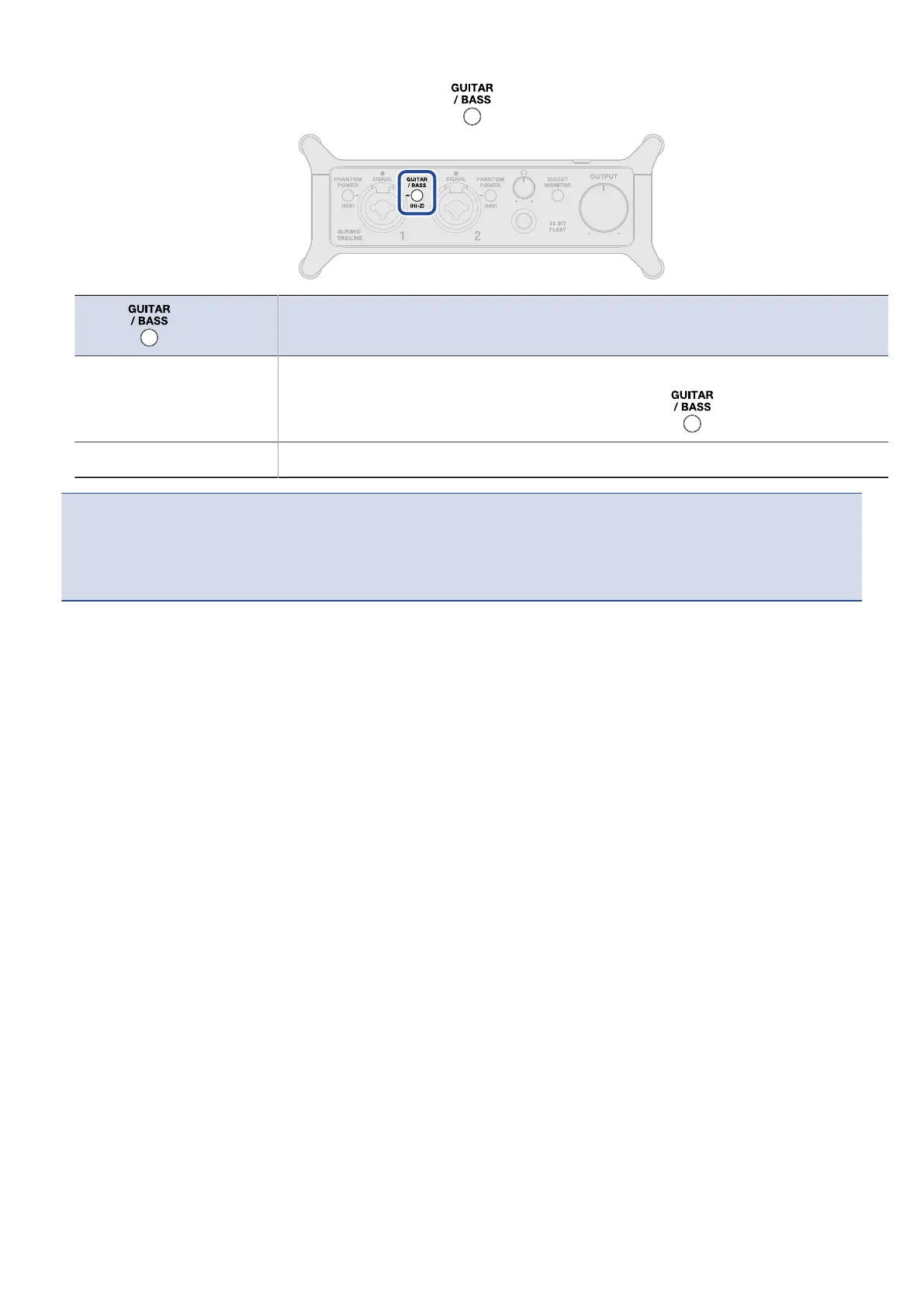 2. When connecting a guitar or bass guitar, press so that it lights.