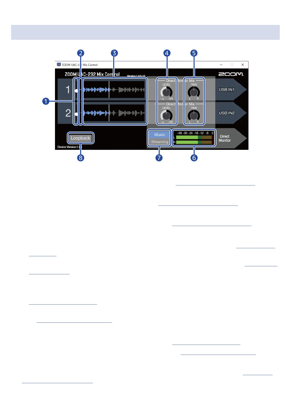 ZOOM UAC-232 Mix Control Screen