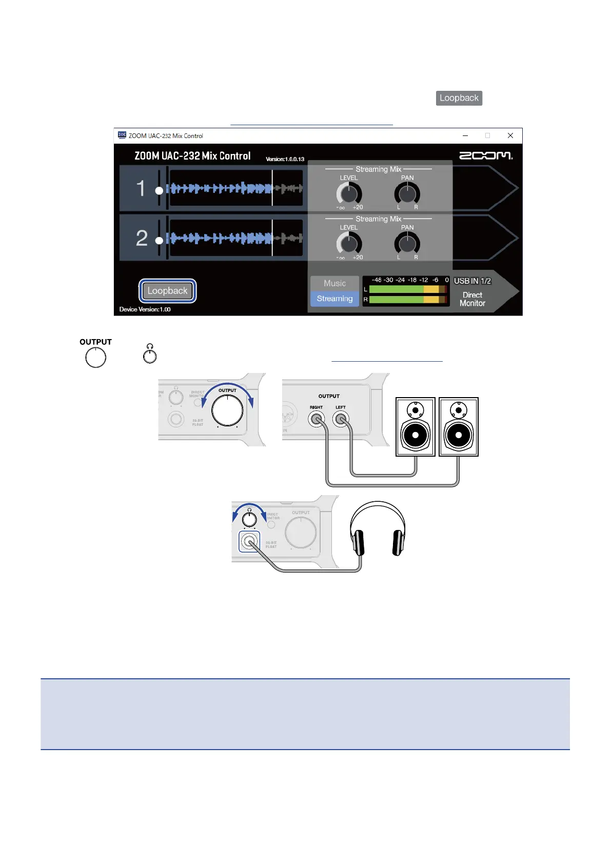 UAC-232 Mix Control to light it. (→ Enabling the loopback function)