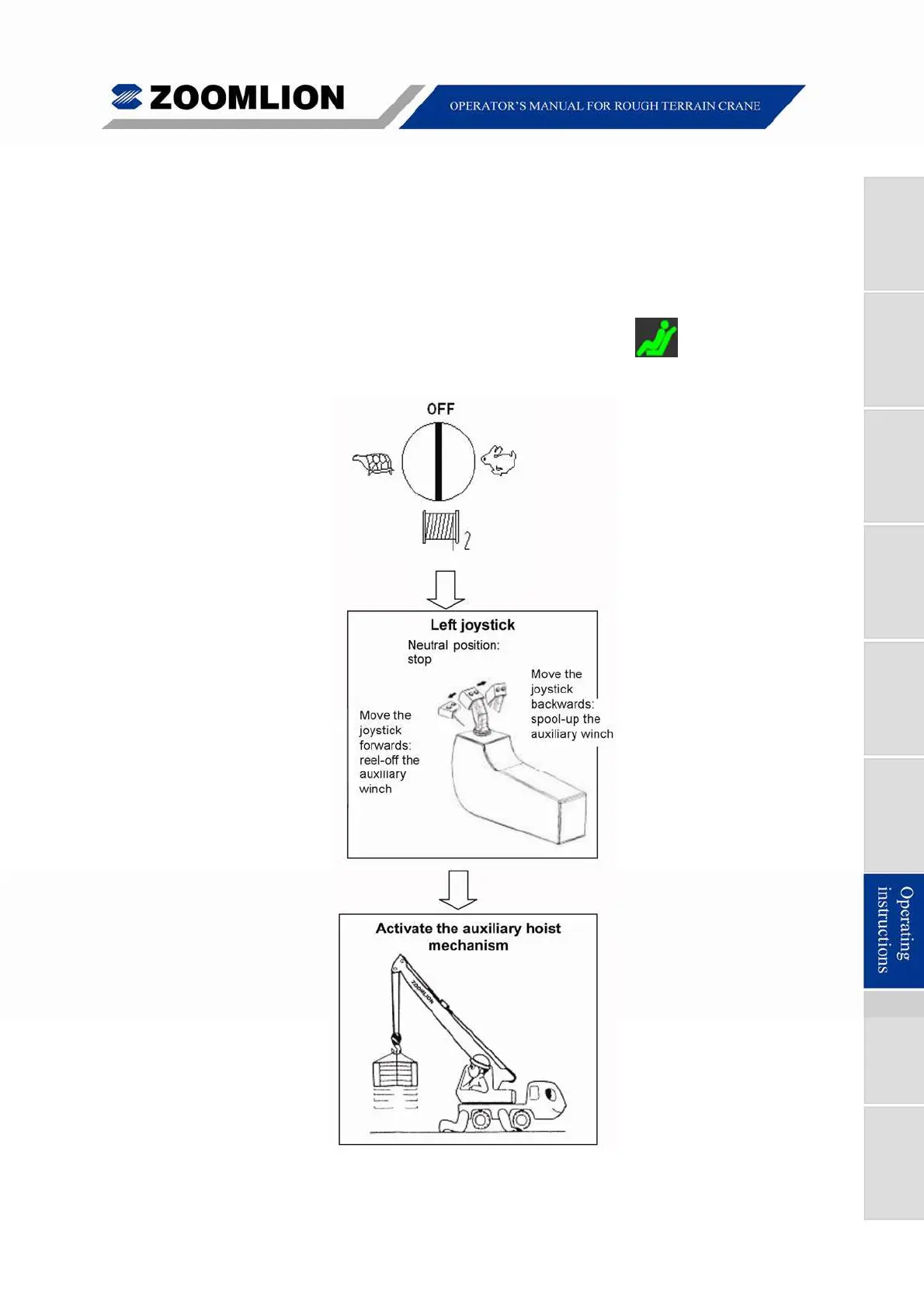 (1) The left joystick controls the auxiliary winch. Push the joystick forward to