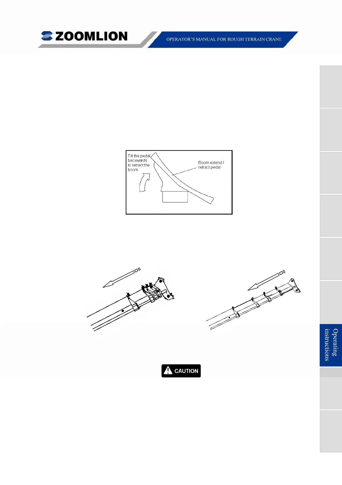 (1) Make sure the seat occupied and activate the pedal to retract the boom.