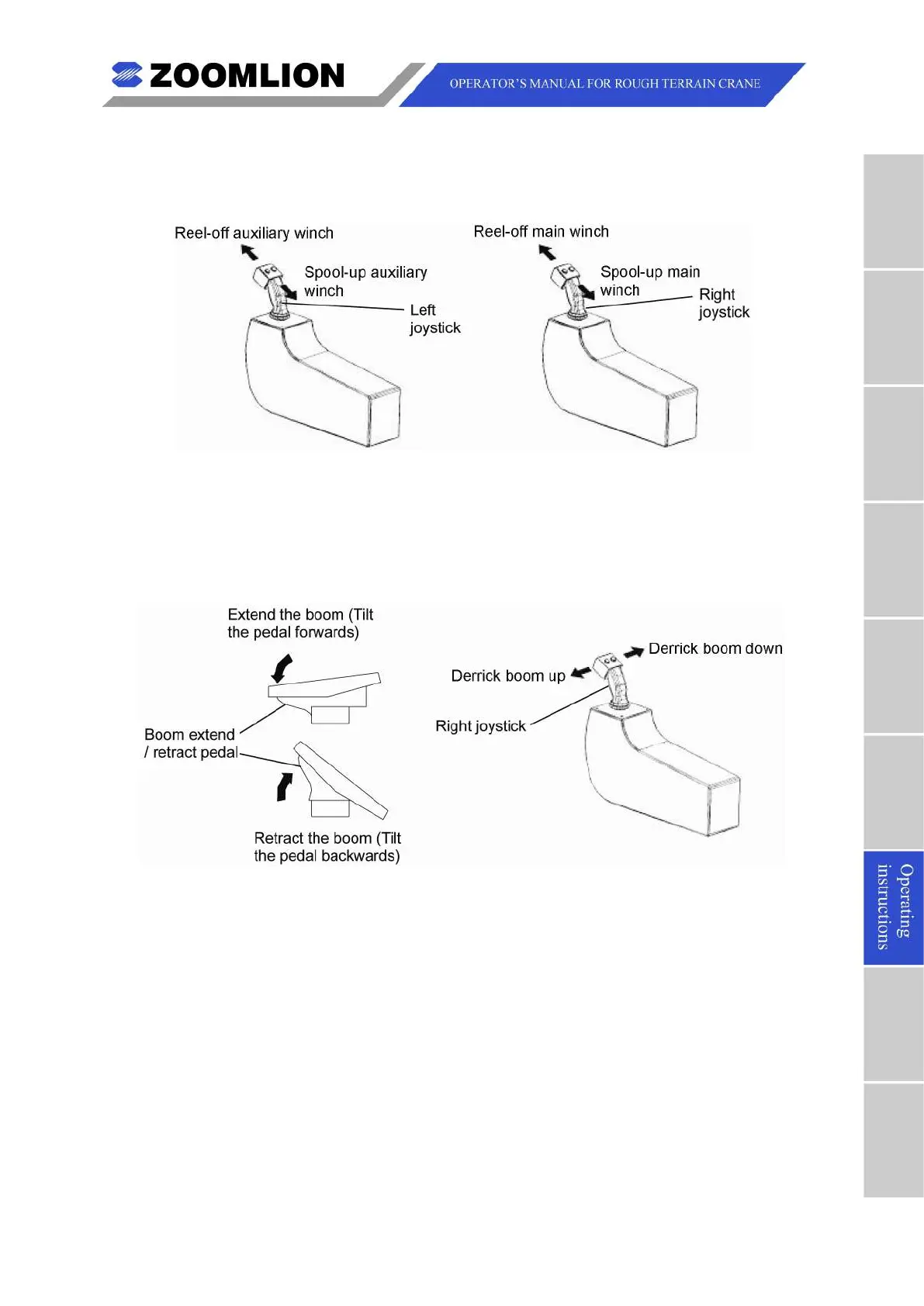 pull) the left and right joysticks. The main hook and auxiliary hook move up and/or down.