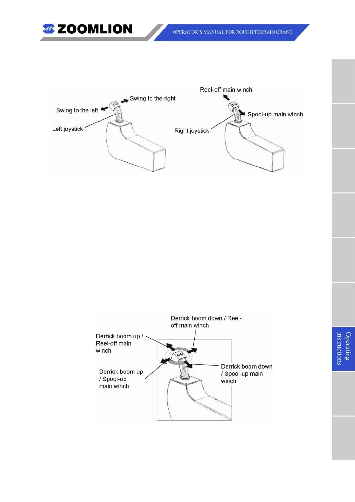 (2) Push up and to the left (10:30 clock position) - the boom moves up and the main
