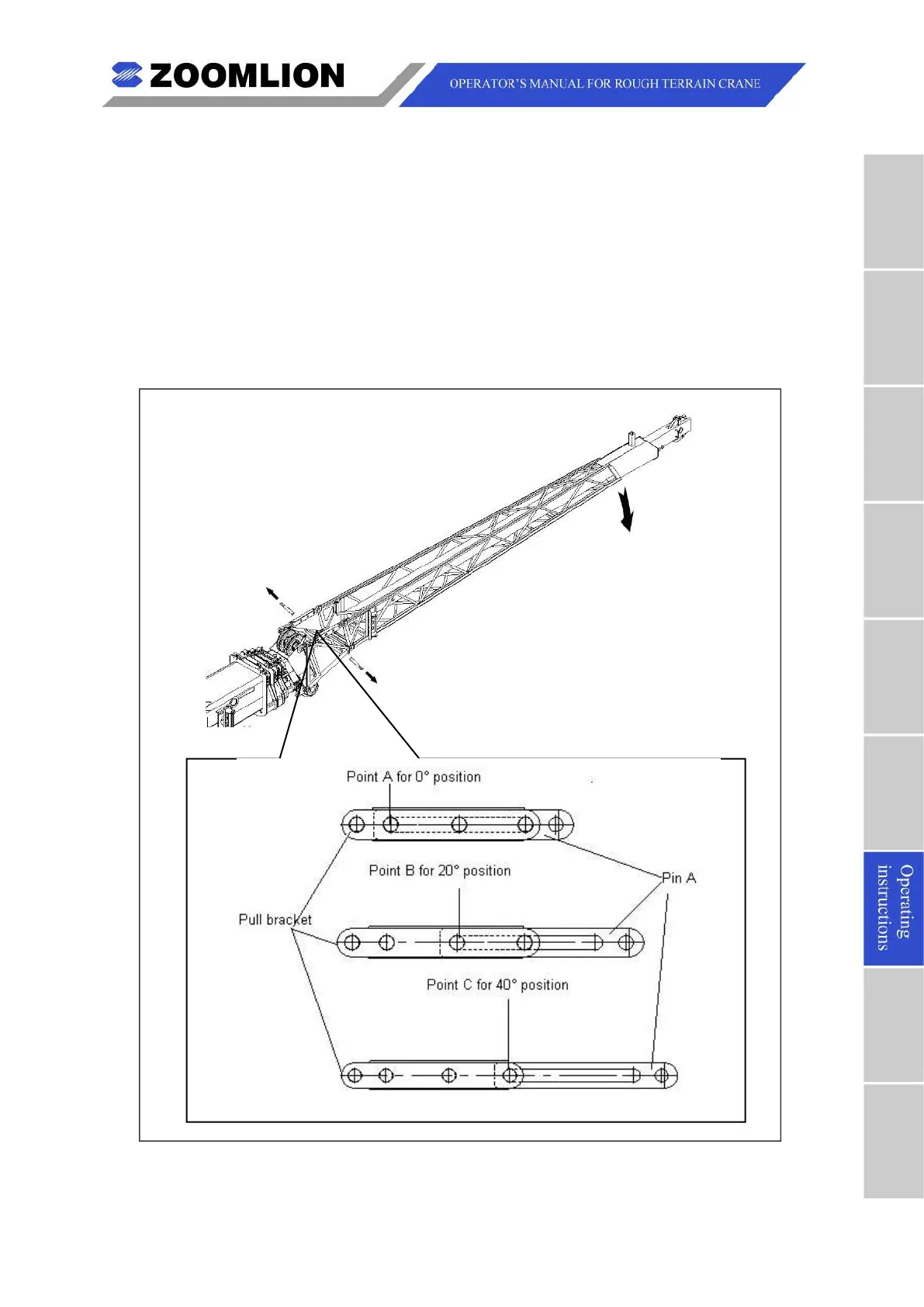 (6) Pay out the hoist rope and derrick the boom up slowly until the pin at point B or point