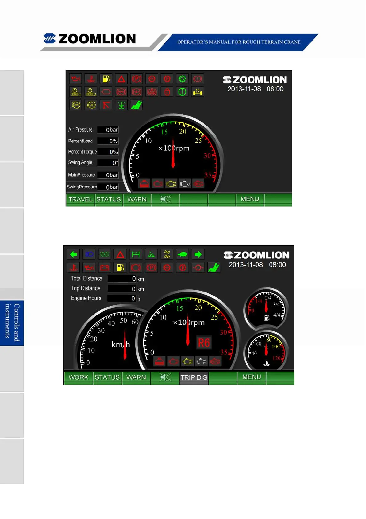 Under Work Mode Screen, the virtual tachometer will be displayed on the screen. See