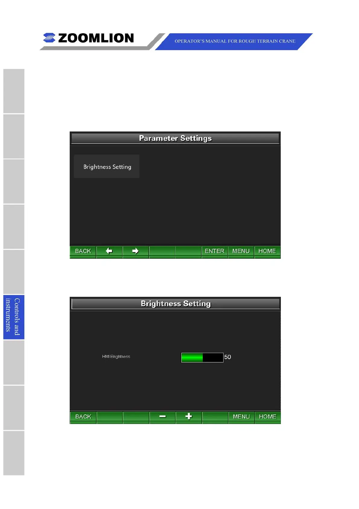 IntheParameterSettingsScreen,youcanadjustthebrightnessofthesystem.