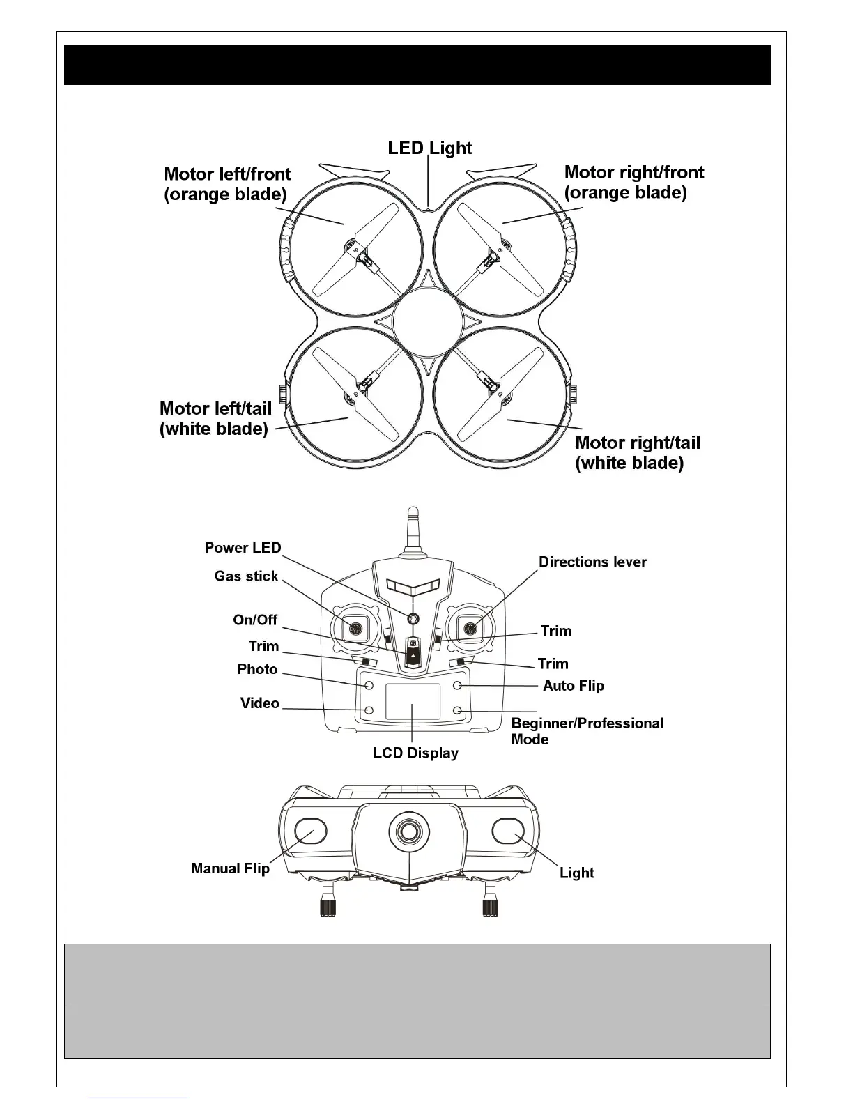 Never fly at strong wind or bad weather!