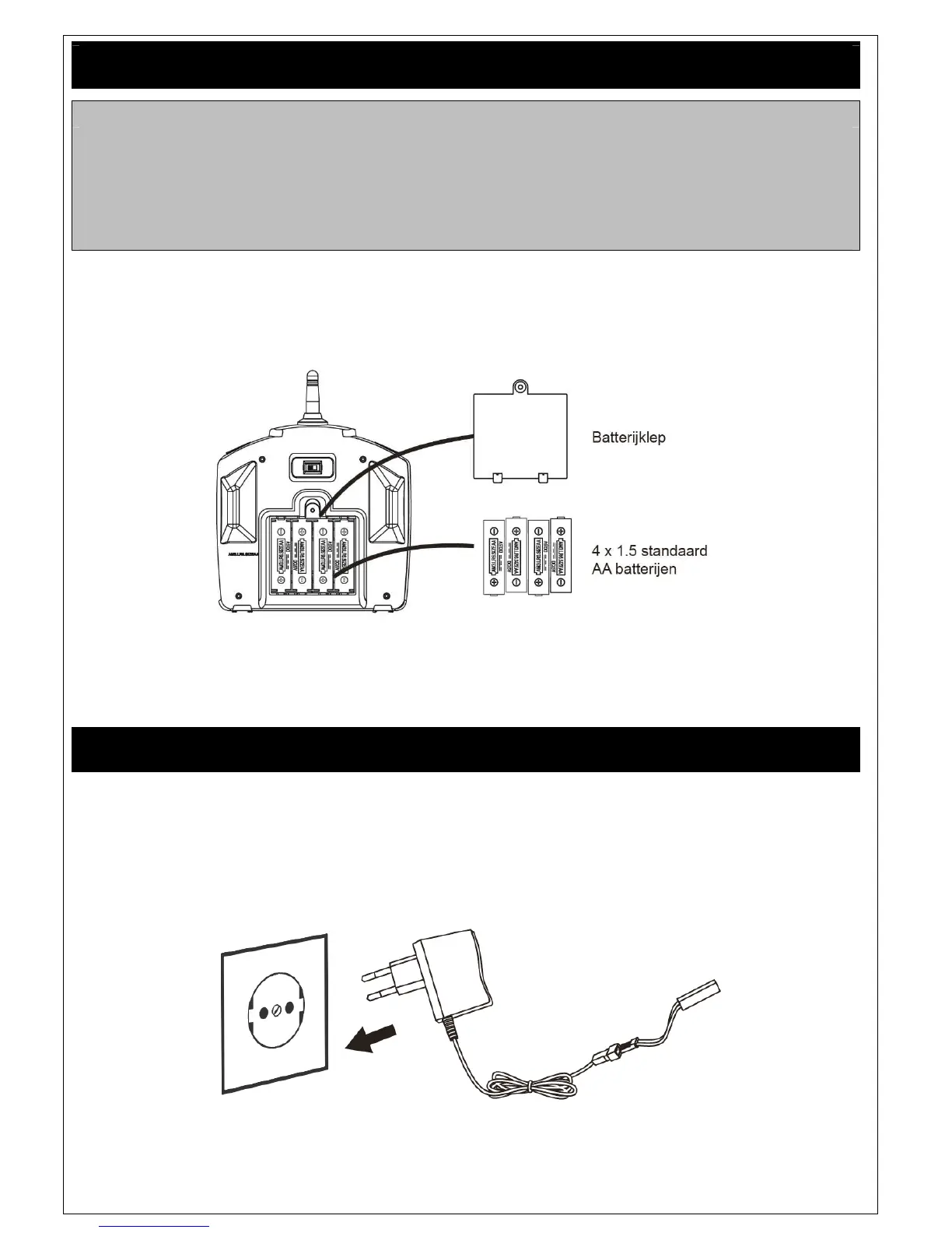 - Schakel de afstandsbediening pas uit nadat het model uitgeschakeld is!