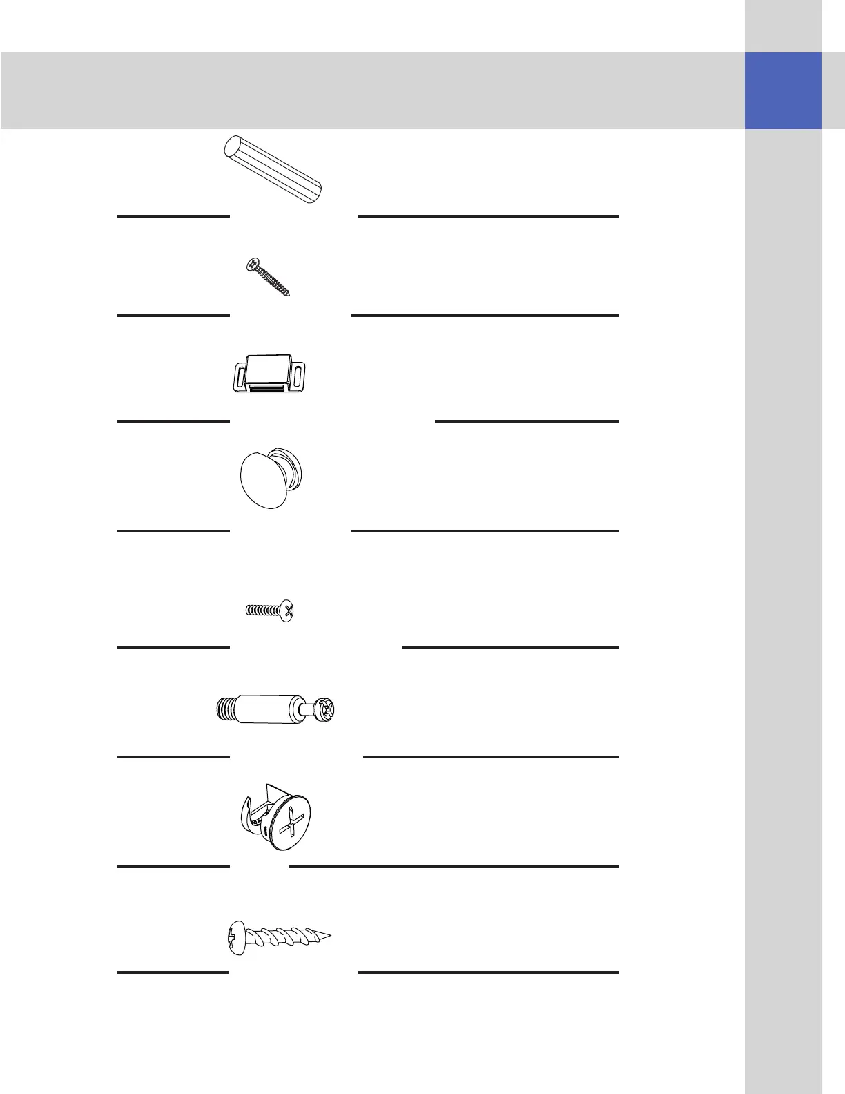 Zoovilla KITTY LITTER LOO - Hardware List; Dowels and Screws; Door Hardware; Cam Lock System