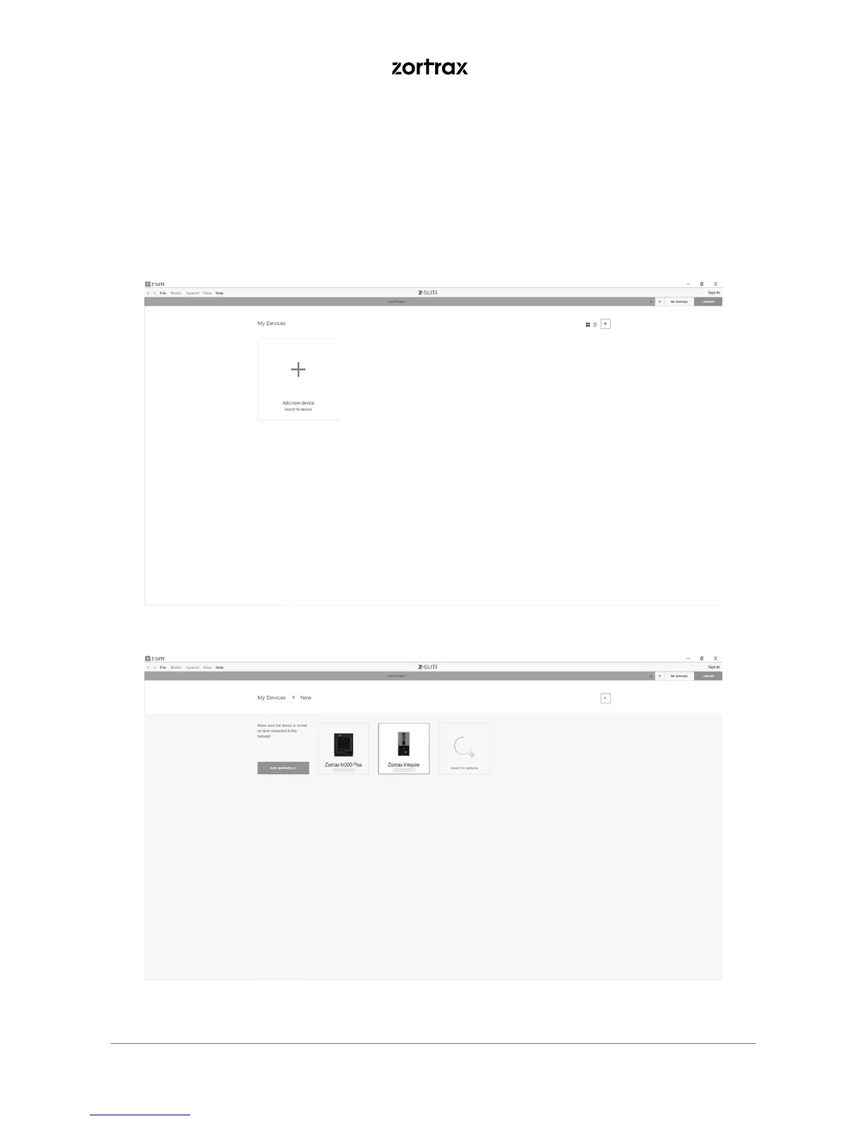 Once your printer is connected to the network, open the My Devices panel in Z-SUITE. You
