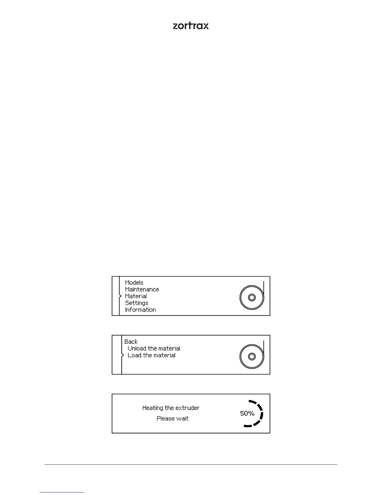 18. From the main menu select “Material” and then “Load the material.” At this point the printer will