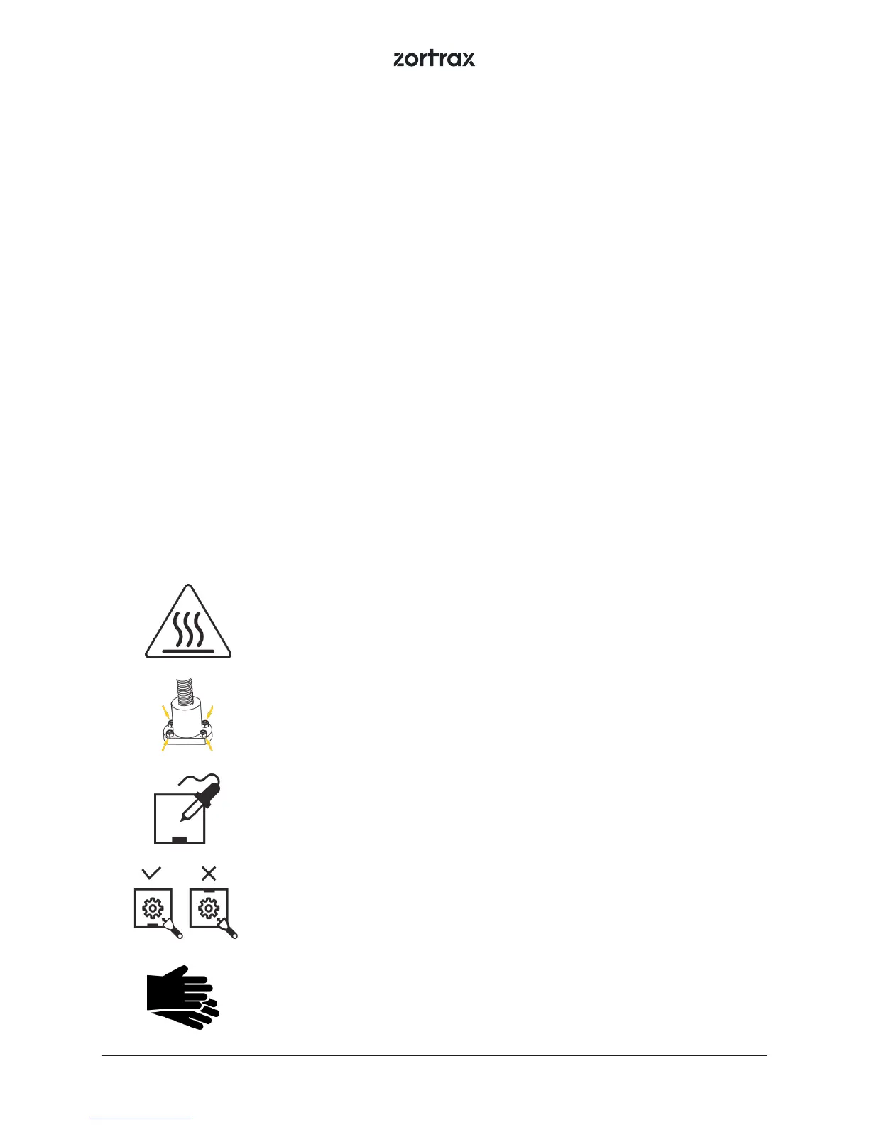 There is a high risk of burns while operating Zortrax printers as the extruder’s temperature may