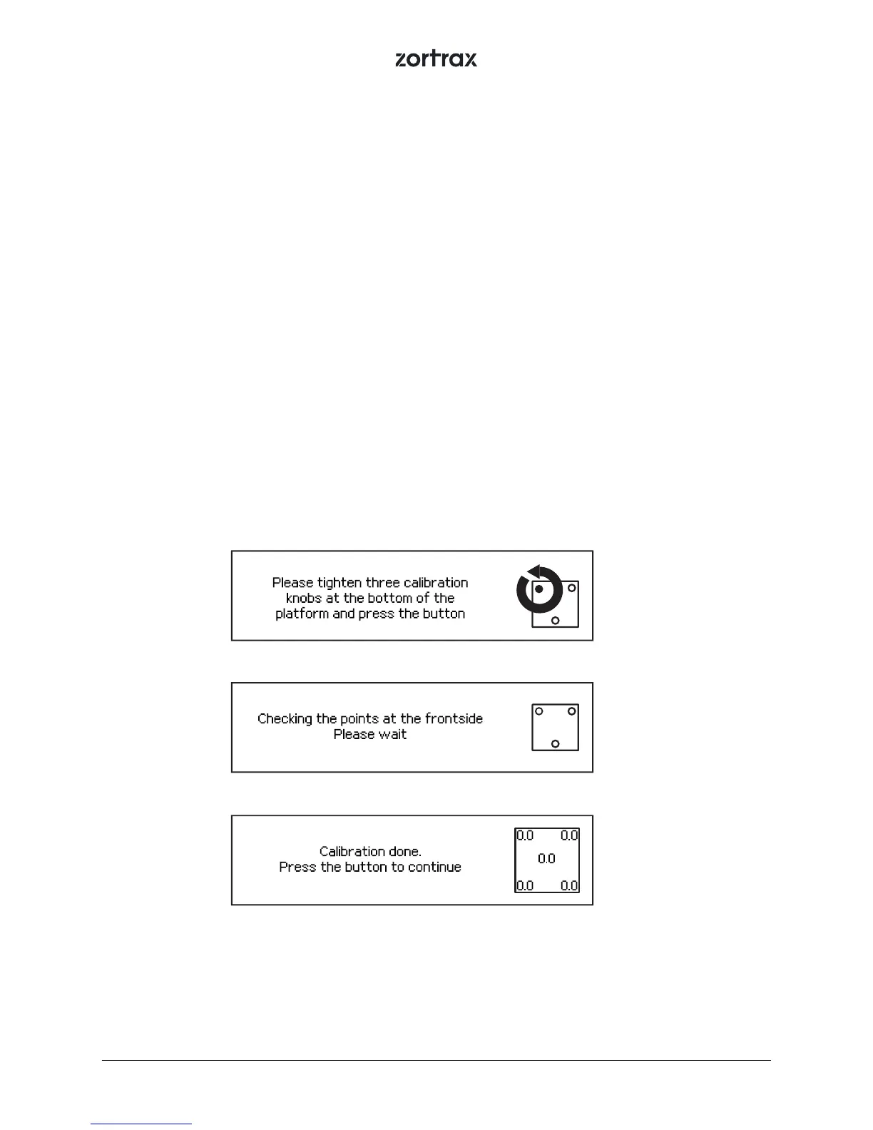 the center point of the platform. Next, the display will show a message indicating that the three cali-