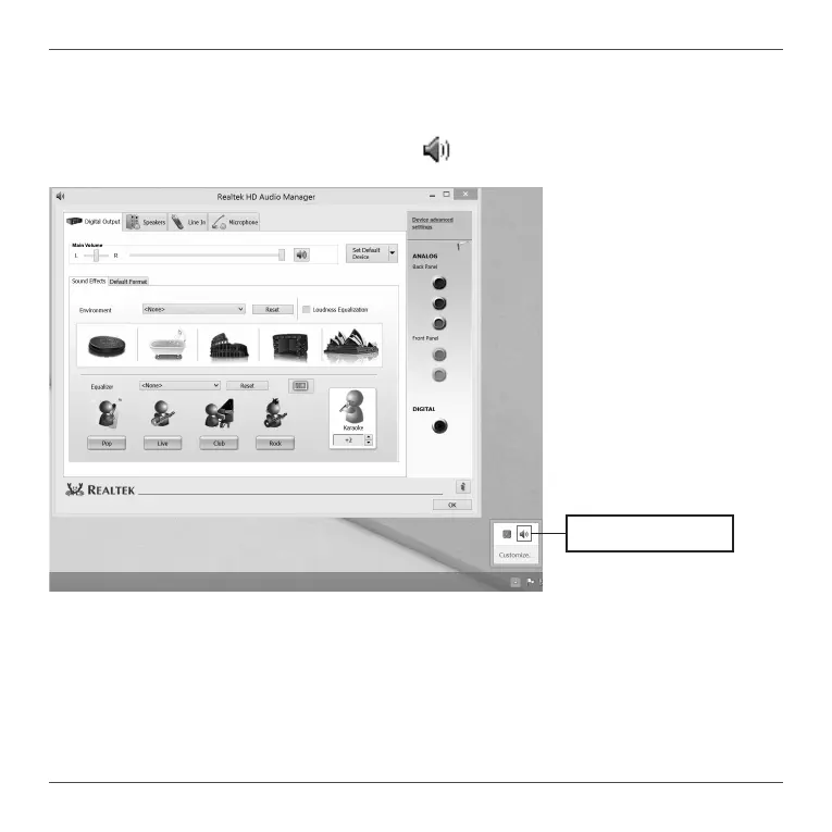 instructions), “Realtek HD Audio Manager” icon will show in System tray as below. Double