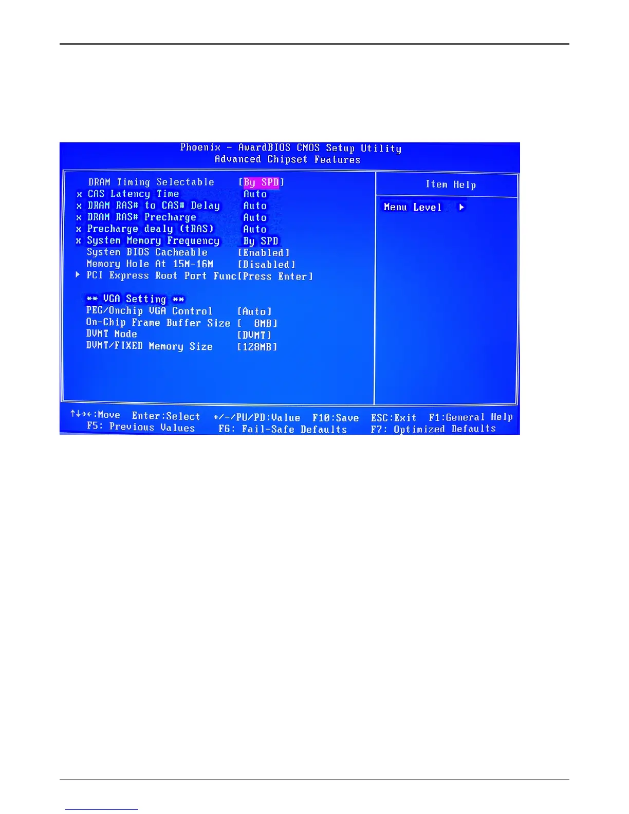 Enter to display the functions of the Advanced Chipset Functions menu.