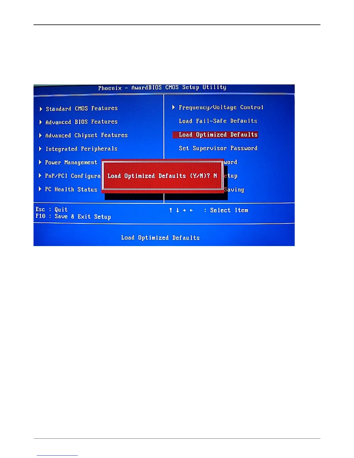 Press <Enter> on this item and then press the <Y> key to load the optimal BIOS