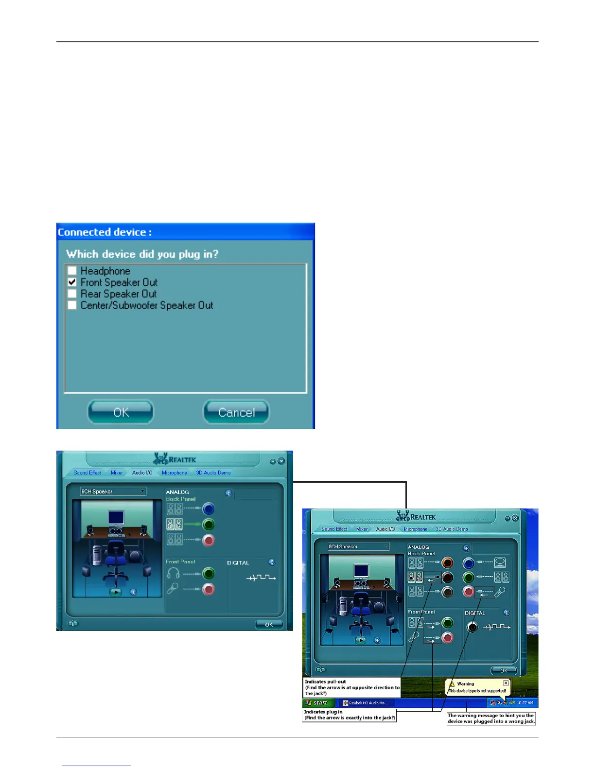 * If not correct, Realtek HD Audio Manager will guide you to plug the device into the