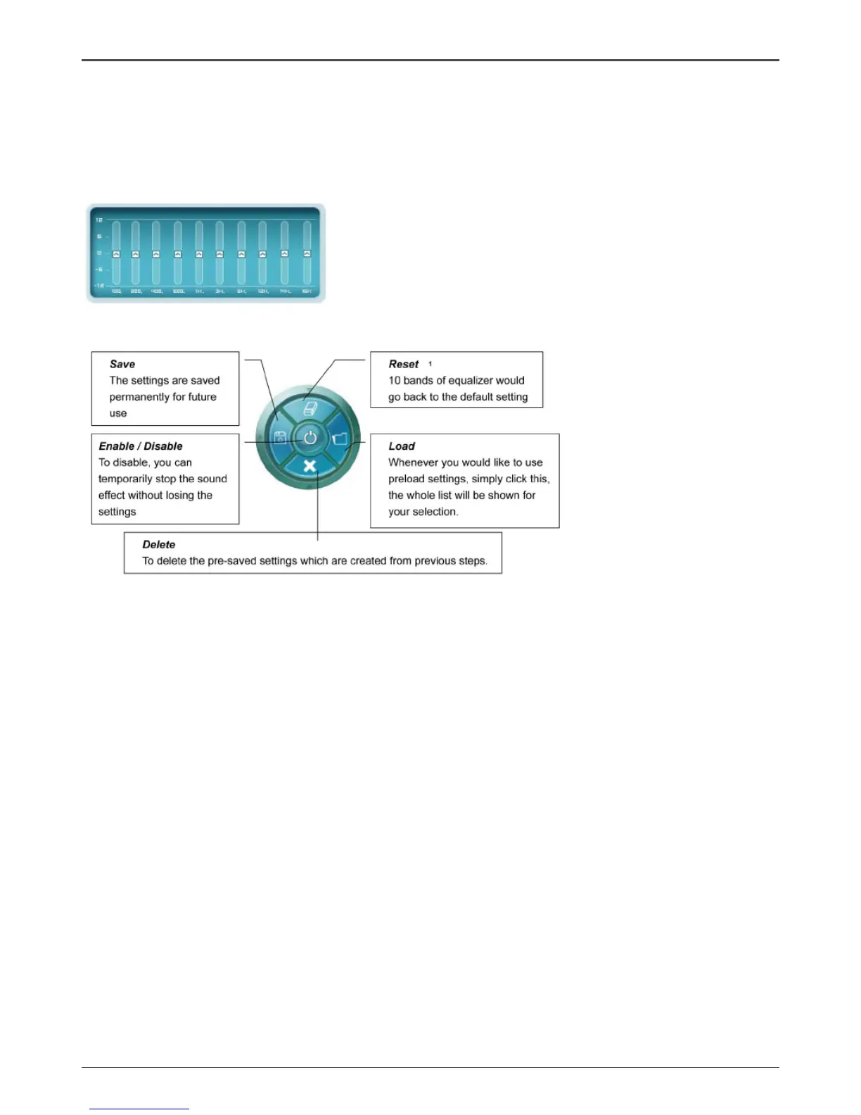 The Equalizer section allows you to create your own preferred settings by utilizing