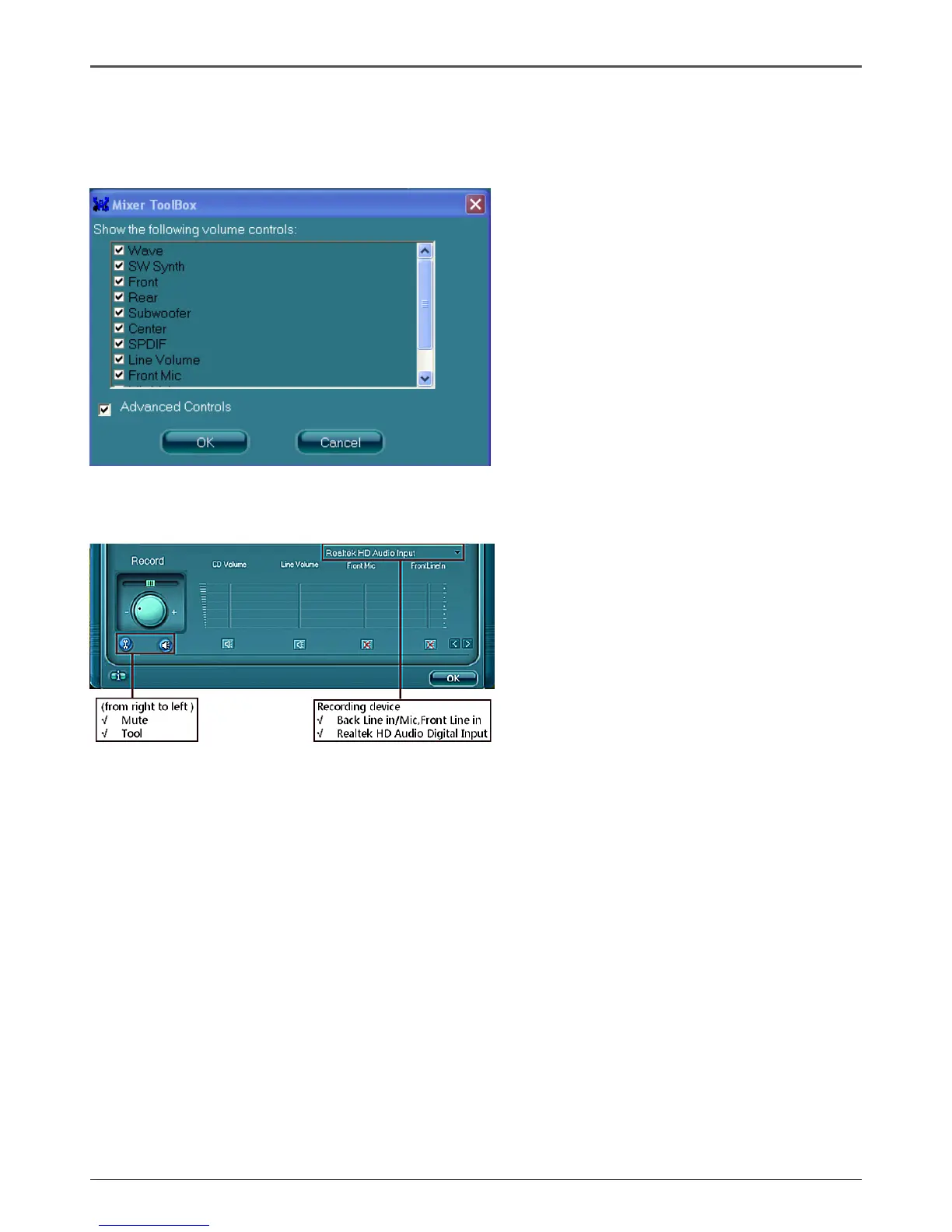 Show the following volume controls