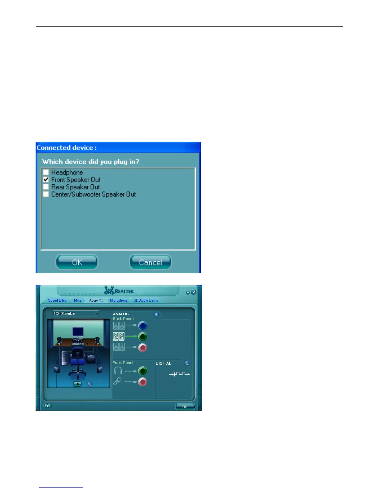 * If not correct, Realtek HD Audio Manager will guide you to plug the device into the