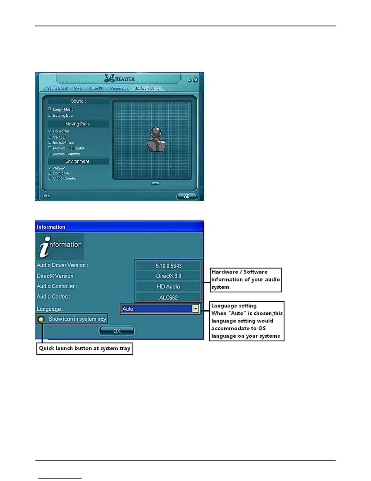 The section “3D Audio Demo” grants you another possibility to enjoy your sound. The