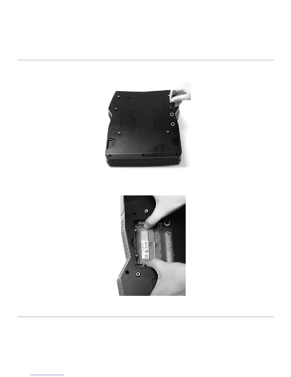 2. Gently press the two arms securing the memory module outwards, as shown in the