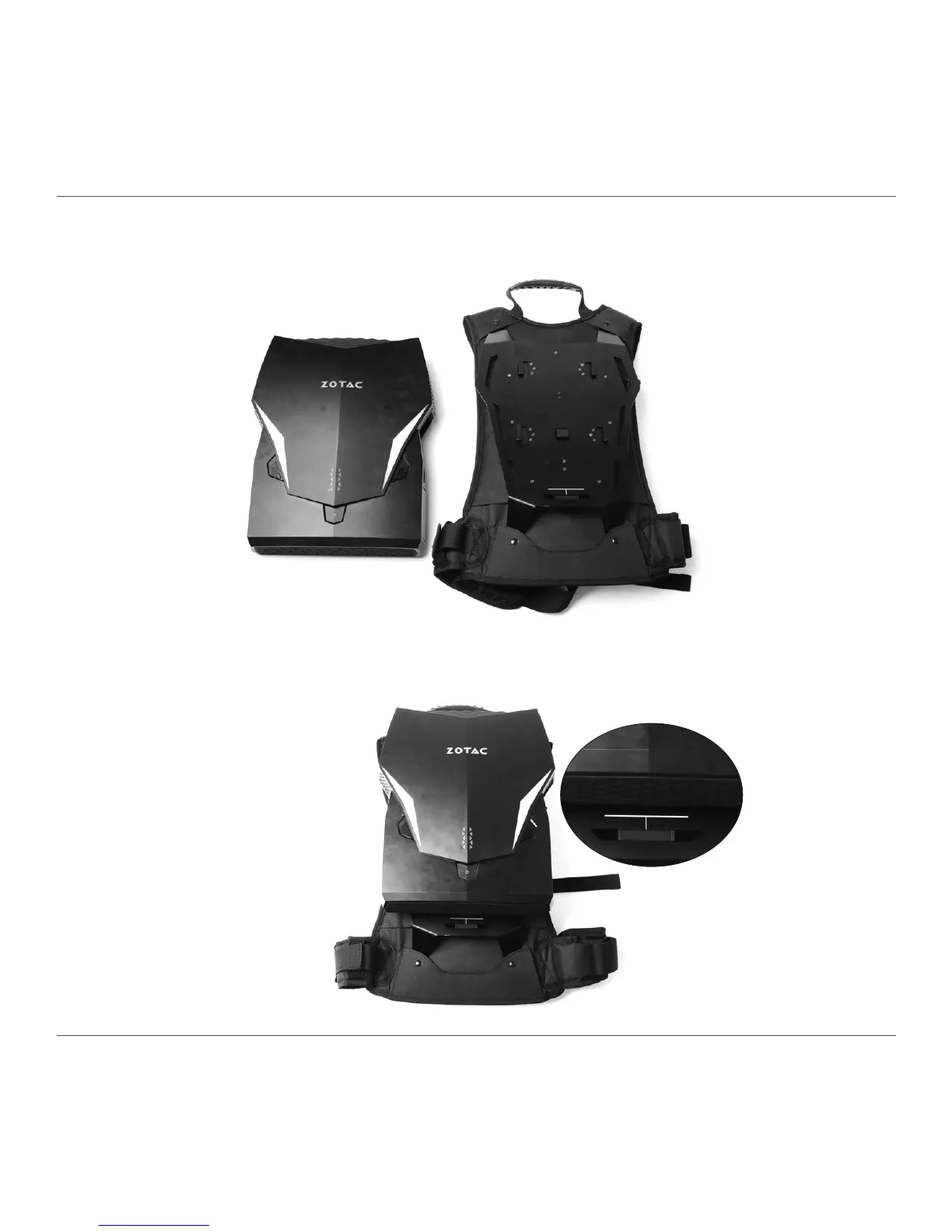 1. Lay the ZOTAC VR GO 2.0 and the backpack on a at surface.