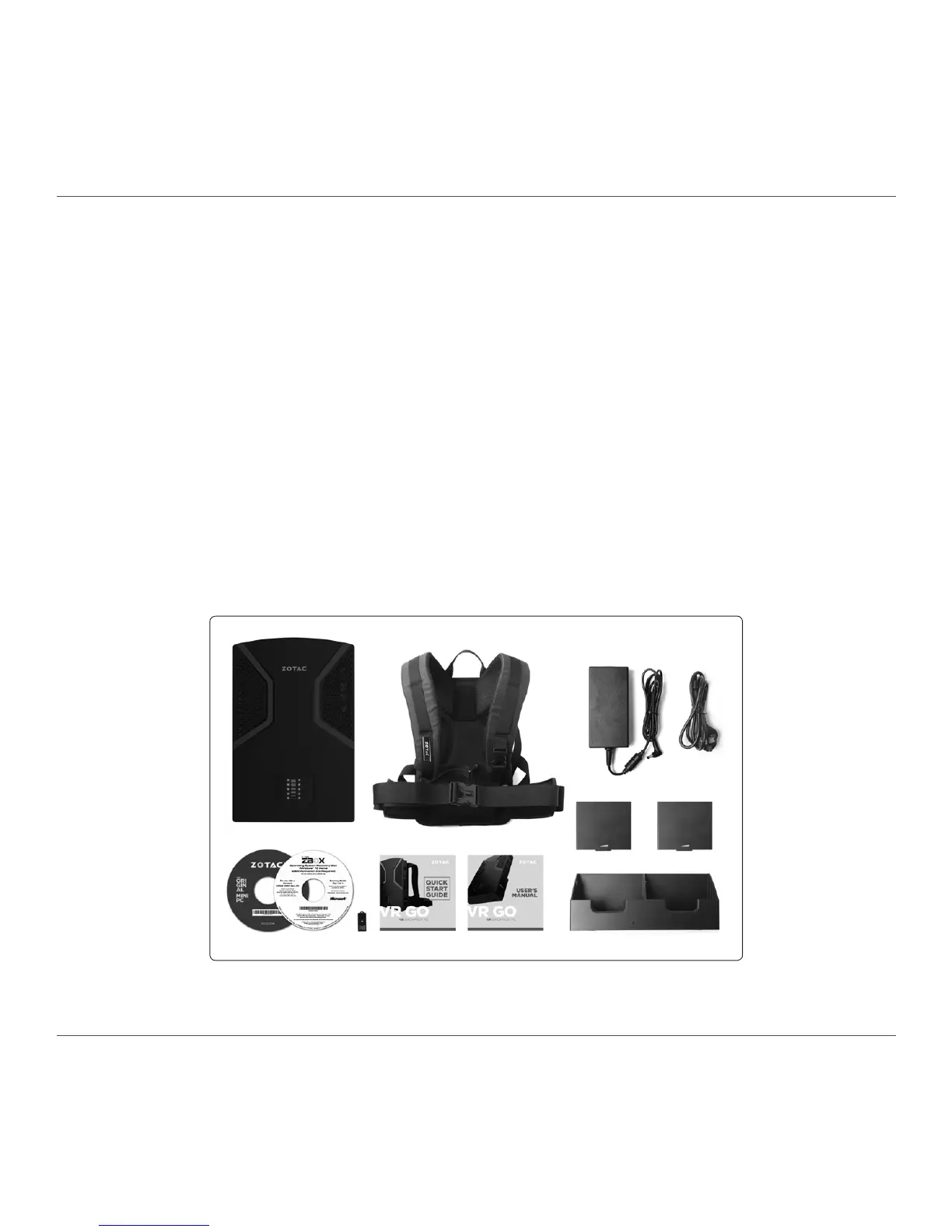 package contents of your new ZOTAC VR GO. If any of the below items is damaged or missed,