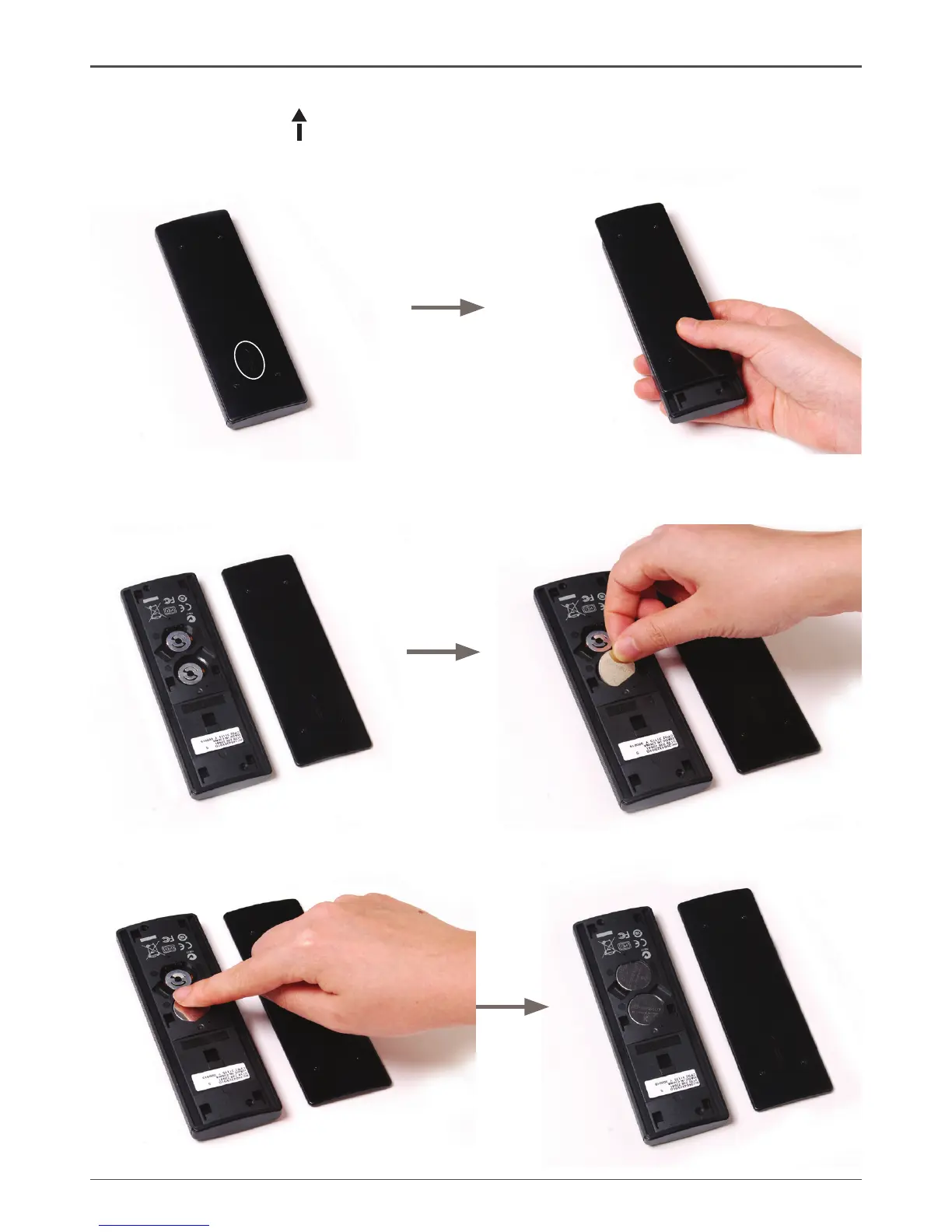 1. Locate the arrow on the rear cover of the remote control, and push the cover