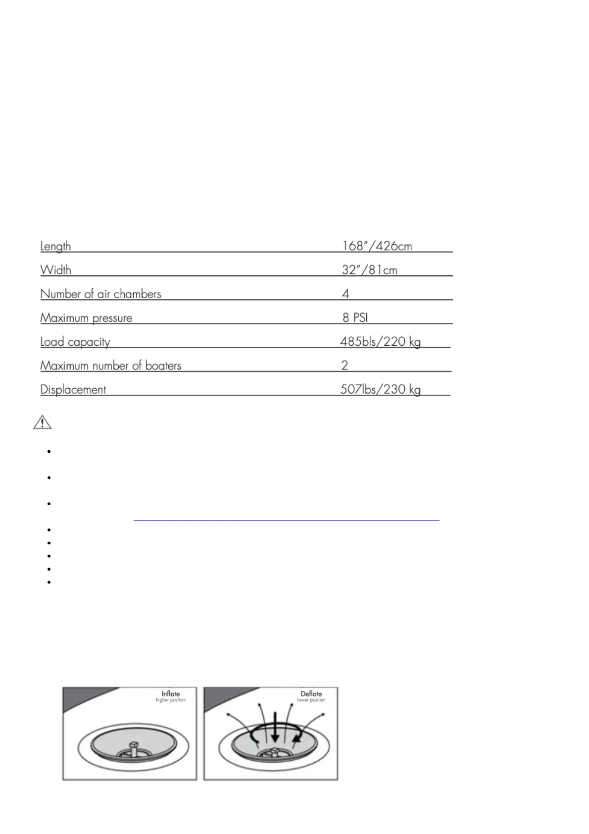 For use only in lakes, rivers and calm seas. Do not use for white water rafting.