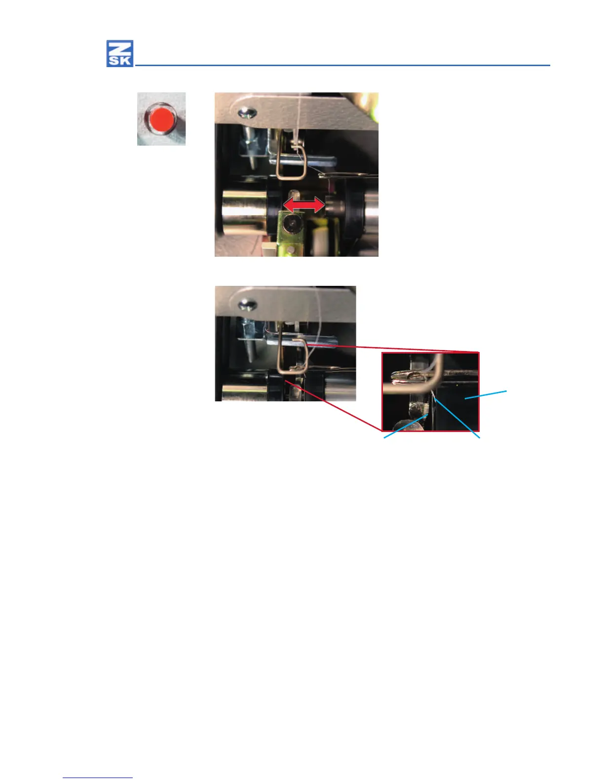 bobbin support, the bobbin support is closed and the thread is trapped between