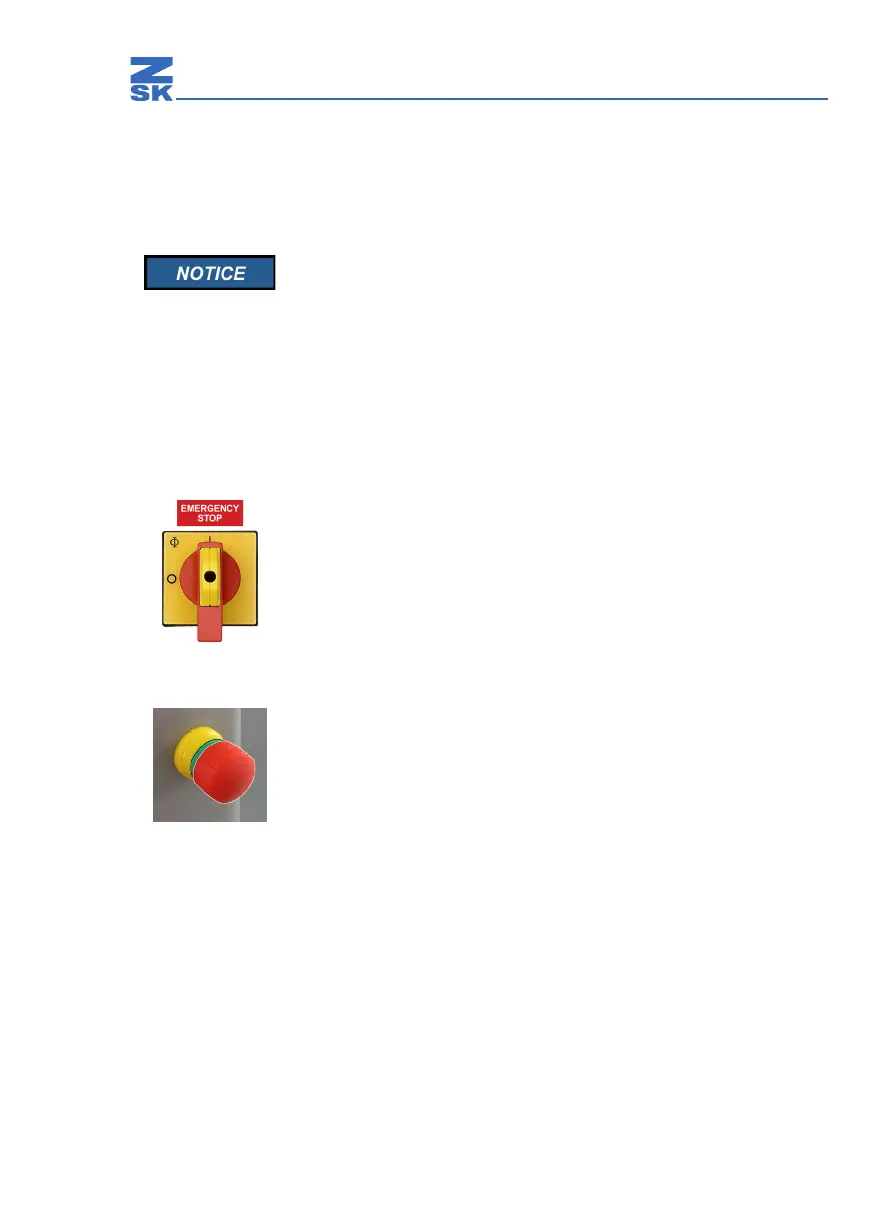 The main switch also functions as an EMERGENCY STOP switch on 1 and