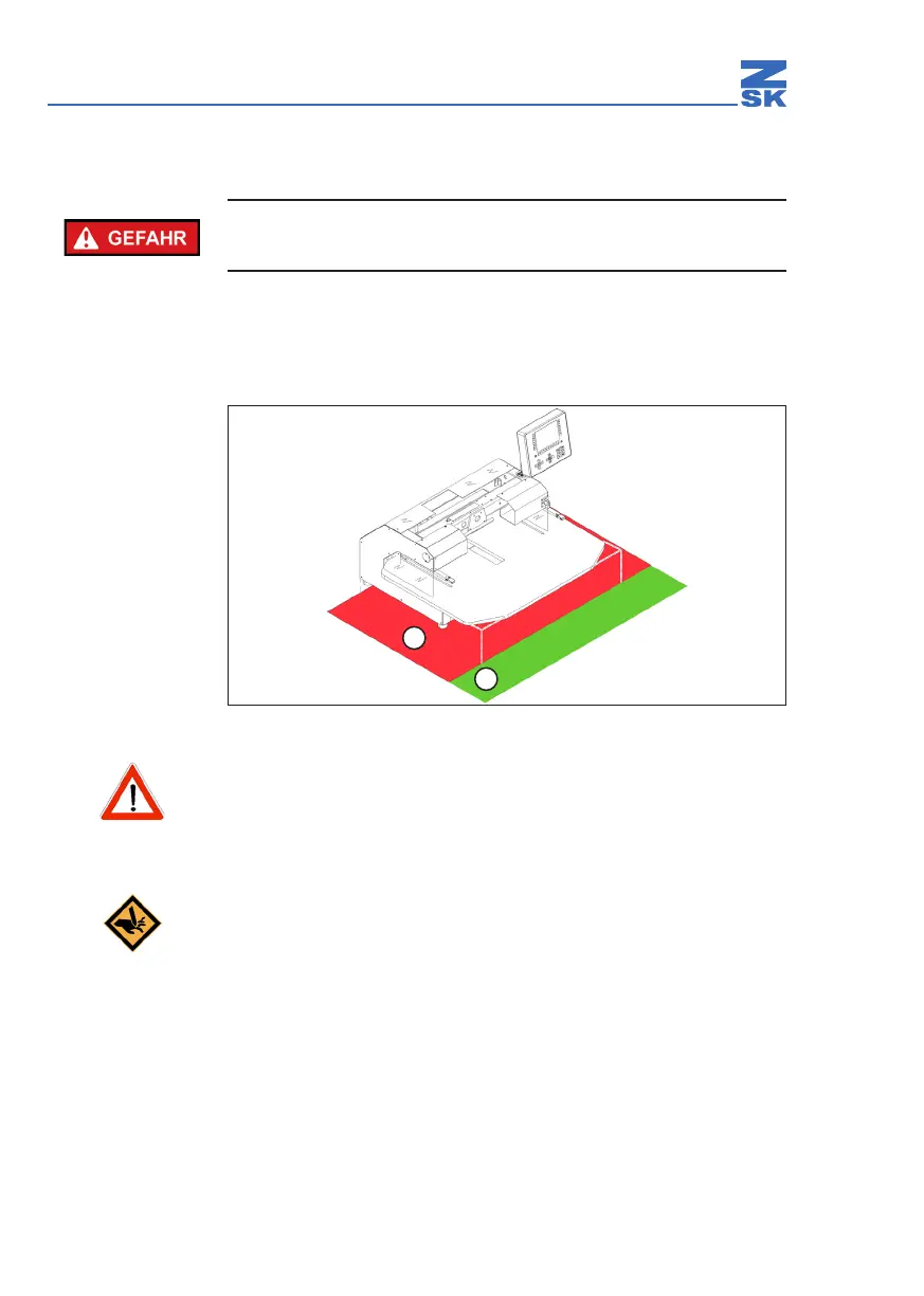 Der Aufenthalt innerhalb dieser Arbeitsäche (1) ist nur bei stillstehender