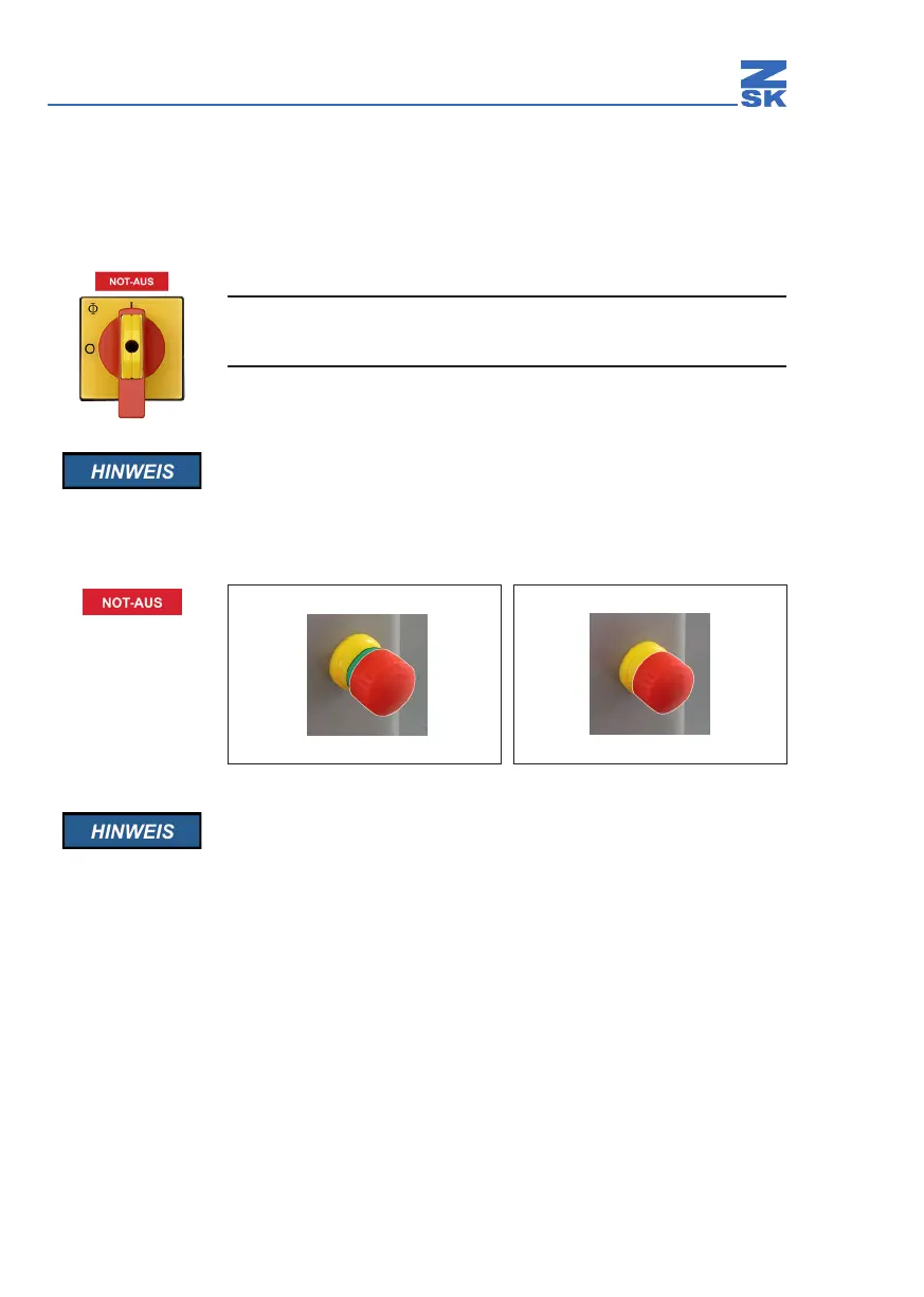 Wurde die NOT-AUS Taste einmal betätigt (Abb. 62), rechts), muss